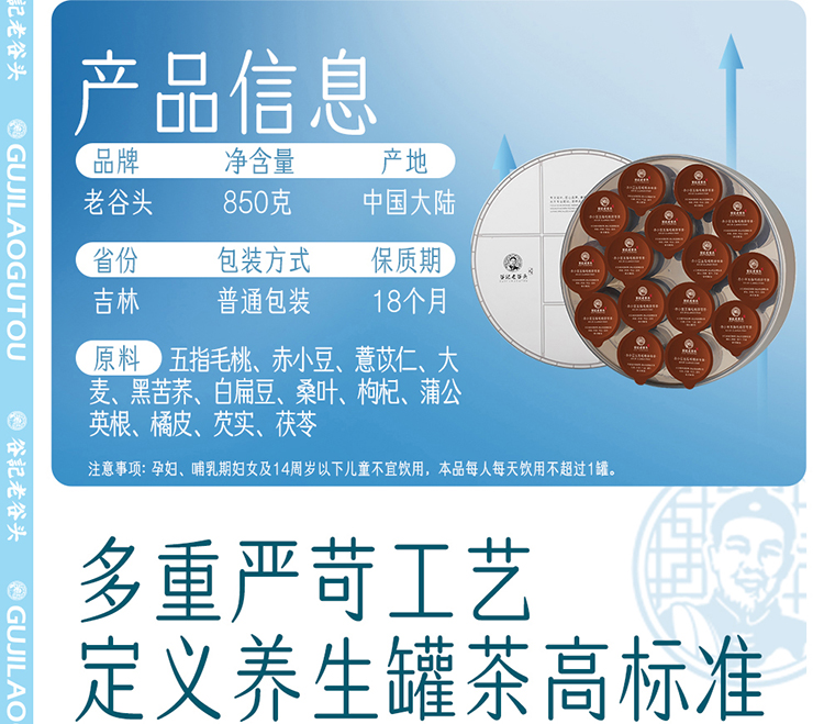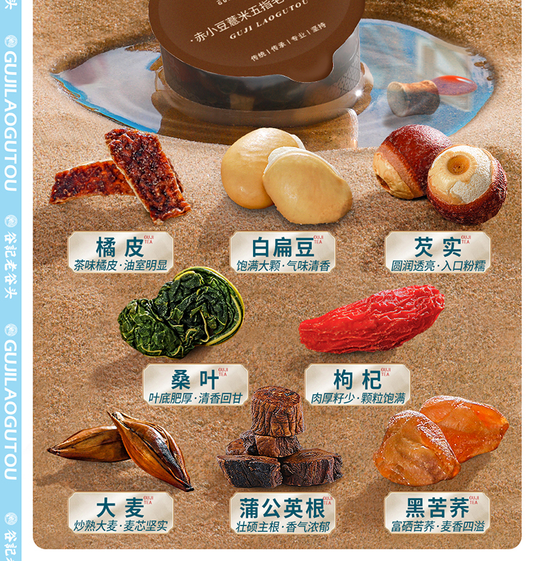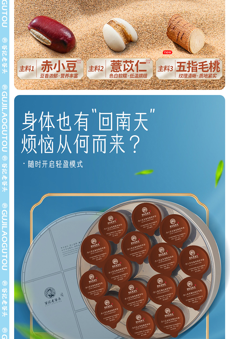 谷记老谷头 赤小豆五指毛桃茯苓茶 养生茶 850g 棕色(单位:盒)