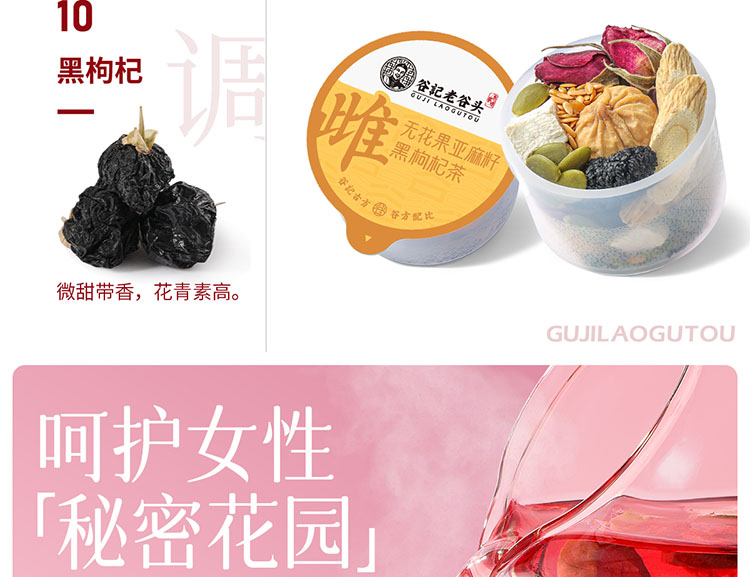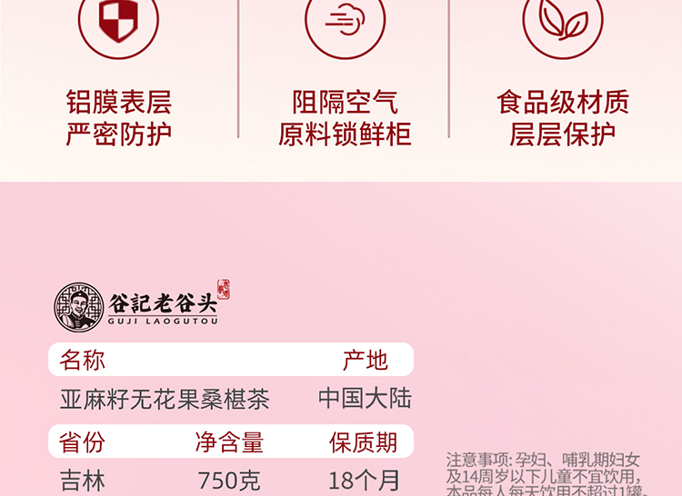 谷记老谷头 亚麻籽无花果桑葚茶 养生茶 750g 黄色(单位:盒)