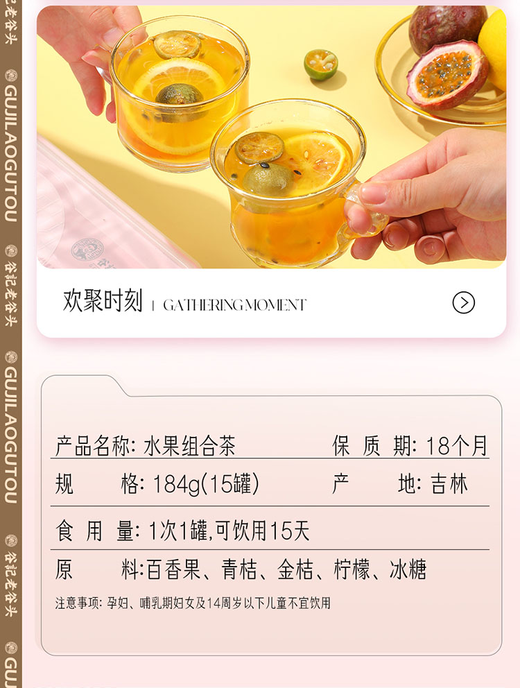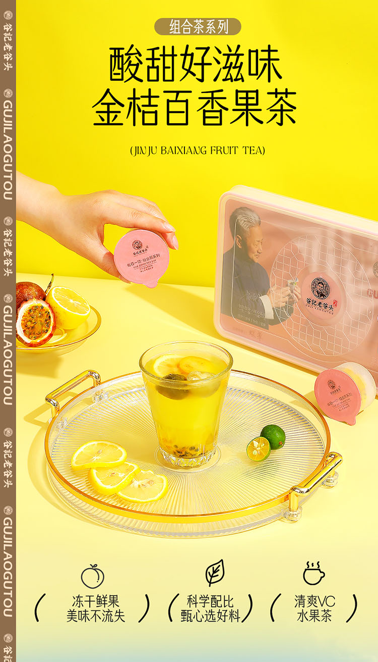 谷记老谷头 金桔柠檬百香果茶 养生茶 184g 粉色(单位:盒)