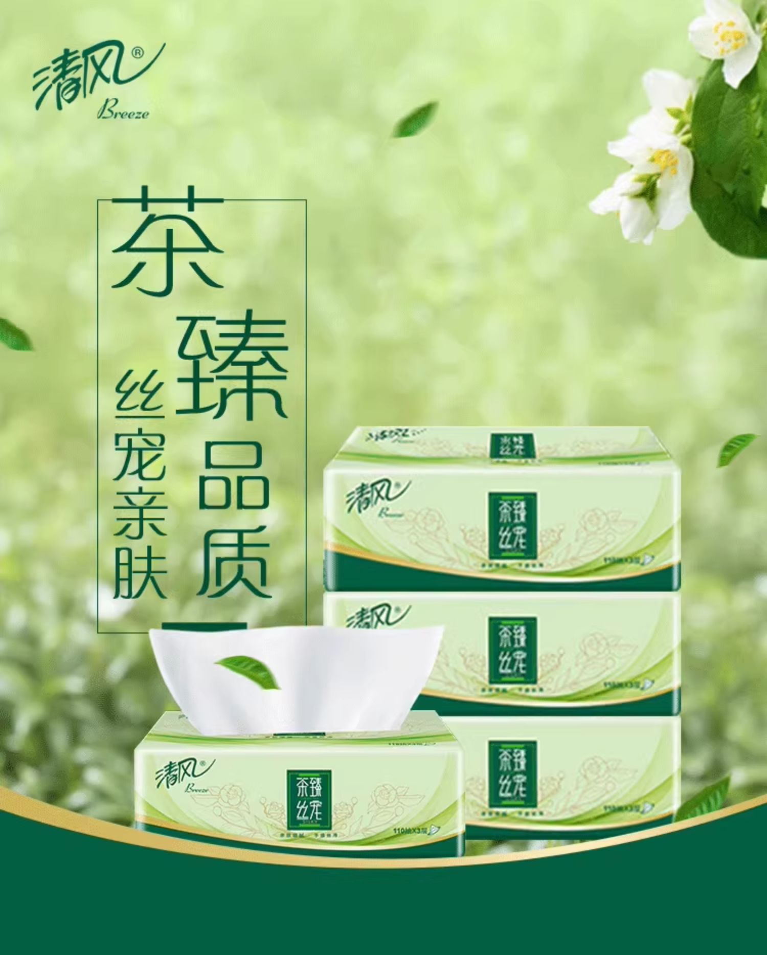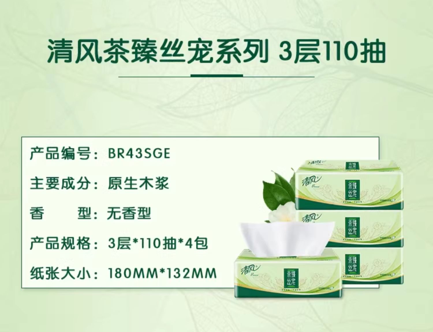 清风 茶臻软抽 BR13SGE 3层110抽4包装 清新色(单位:组)