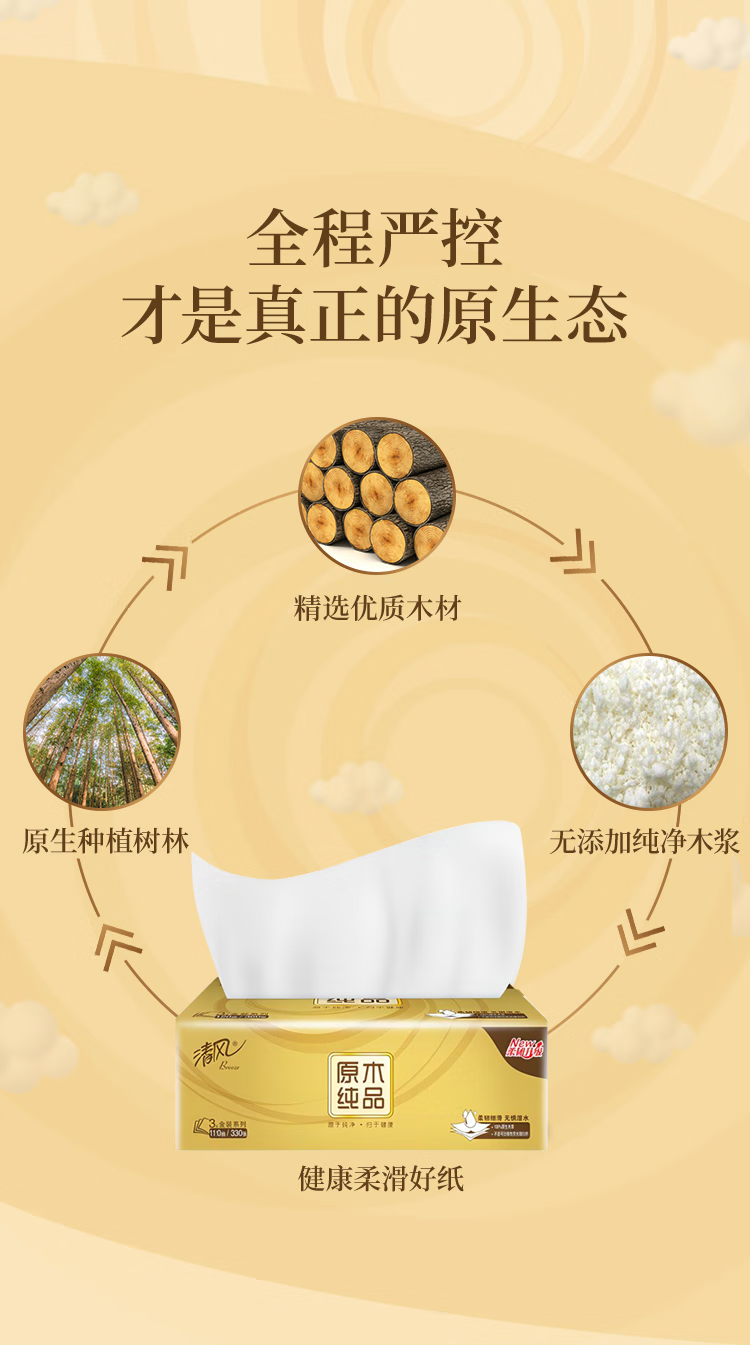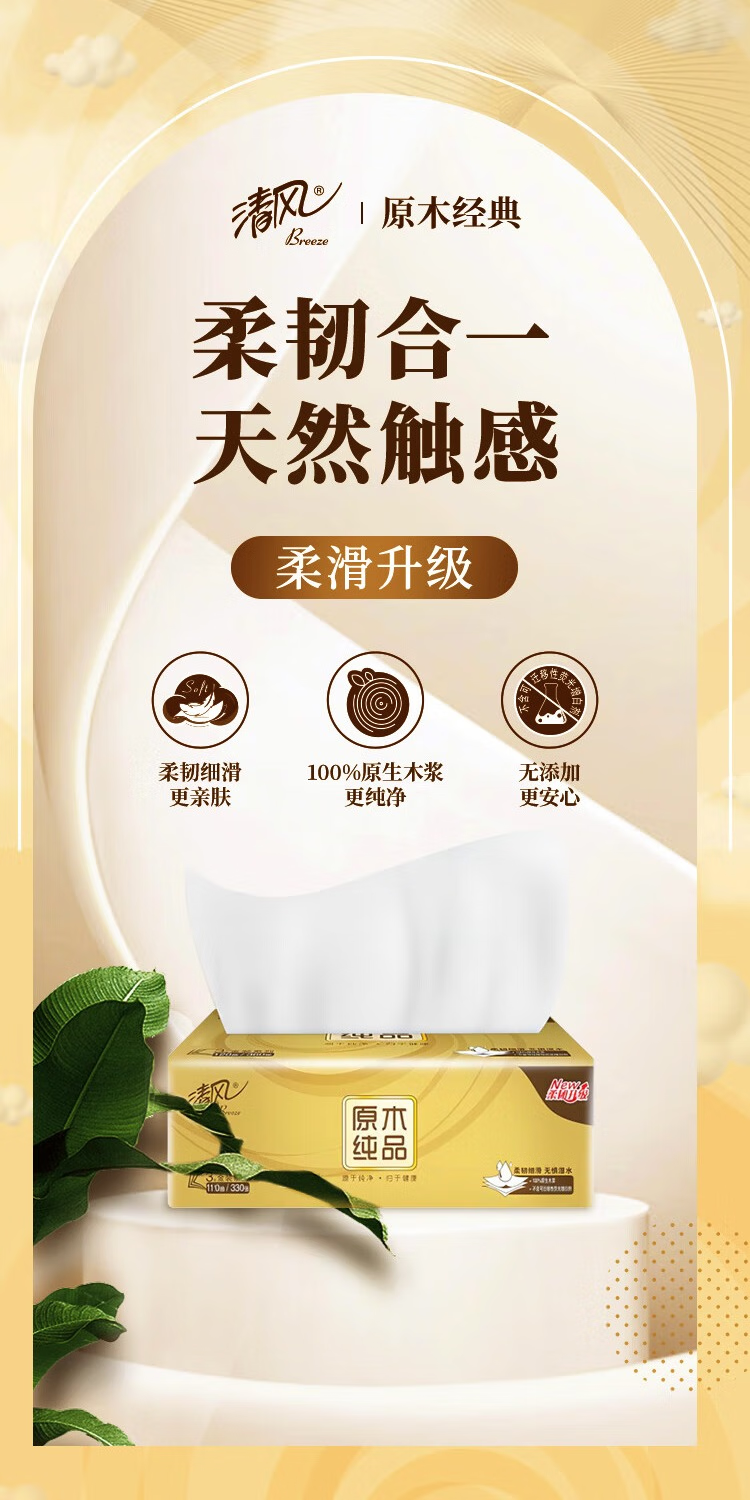 清风 金装系列塑装三层面巾纸 AR41SLX 110抽4包/提 金色(单位:提)