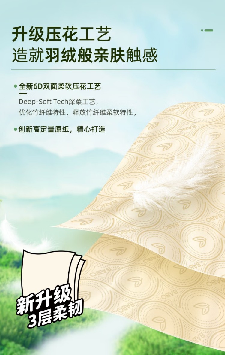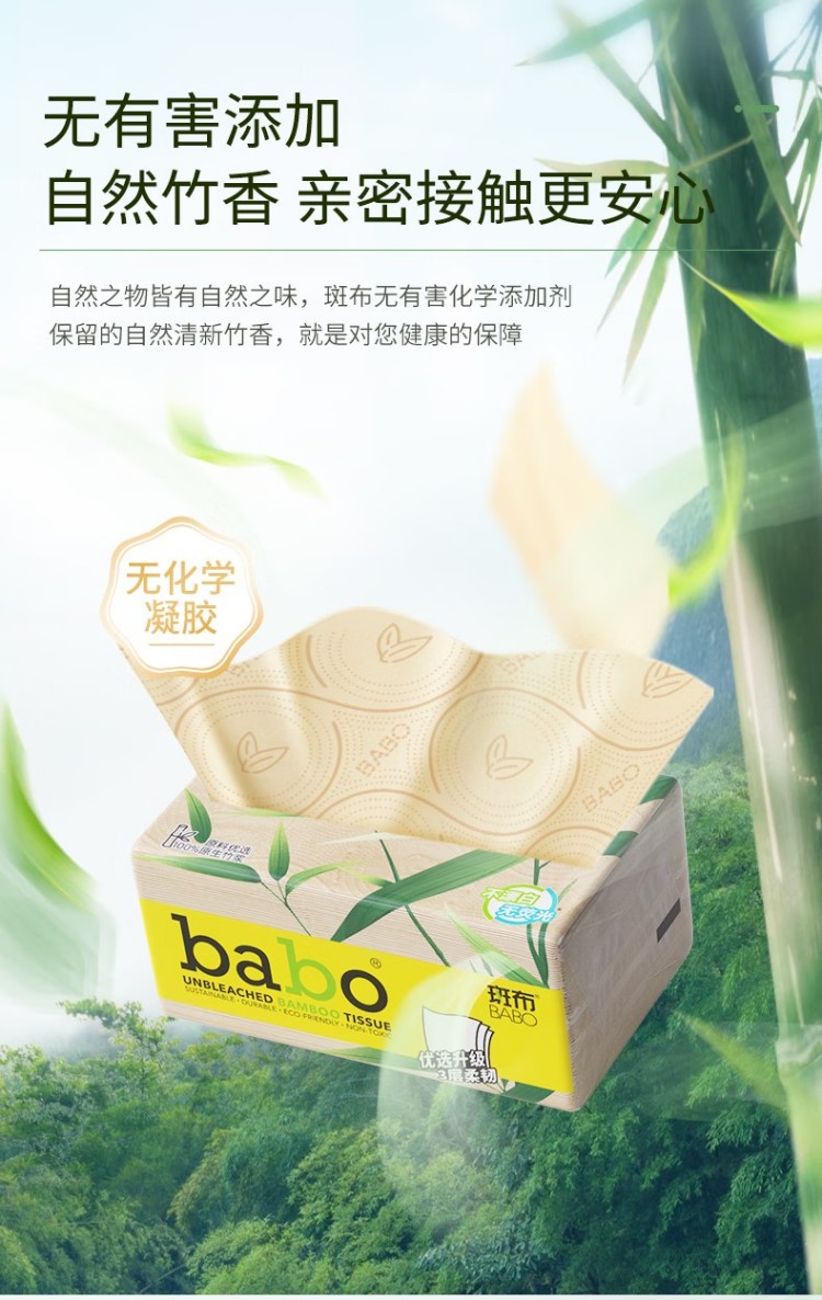 斑布(BABO) 6D压花竹桨本色抽纸 BKFR100E3-X 三层100抽*24包整箱 黄色(单位:箱)