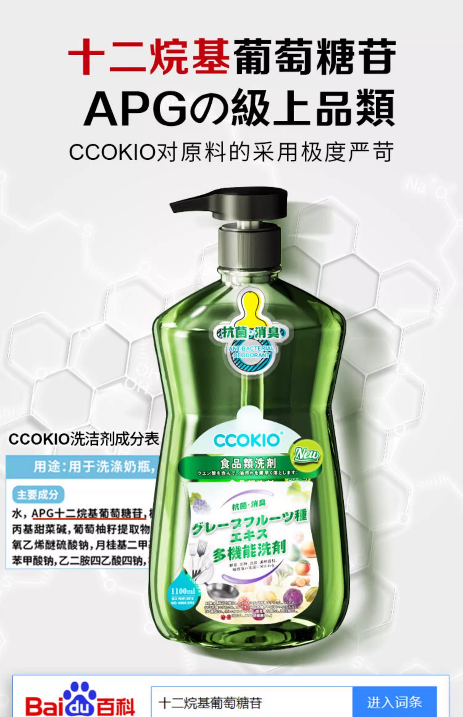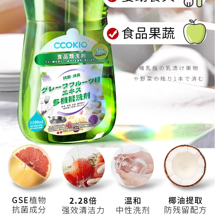 酷优客(CCOKIO) APG多功能洗洁精 果蔬奶瓶专用 1100ml*3瓶 白色(单位:组)