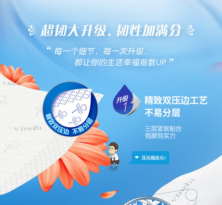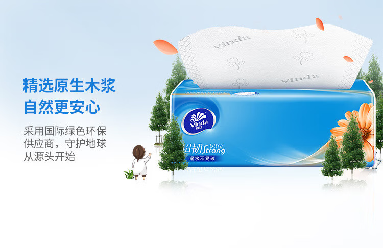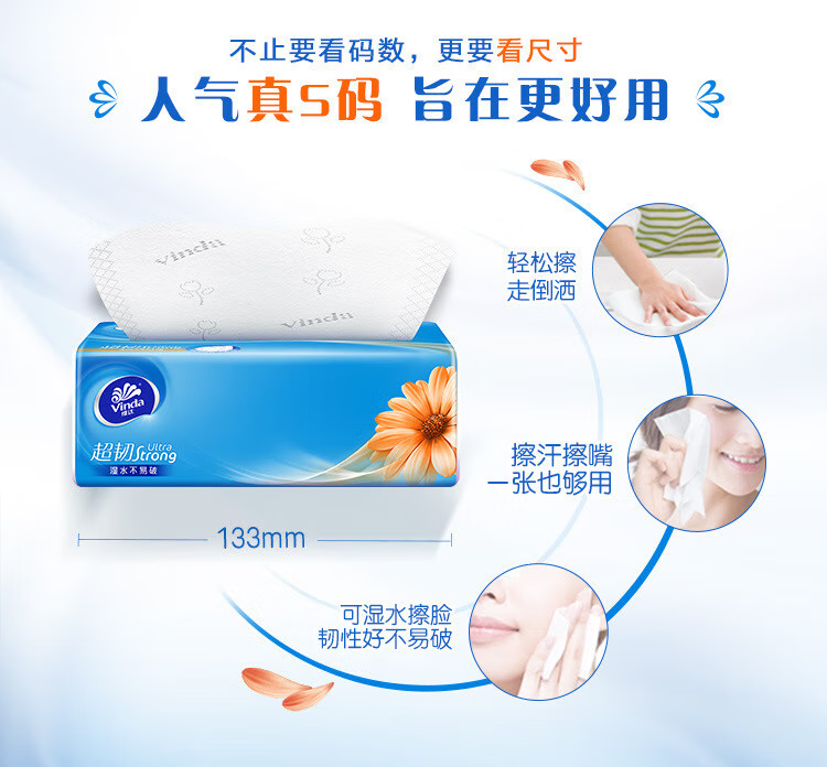 维达 超韧抽取面巾纸S码 V2289 3层100抽6包 蓝色(单位:提)