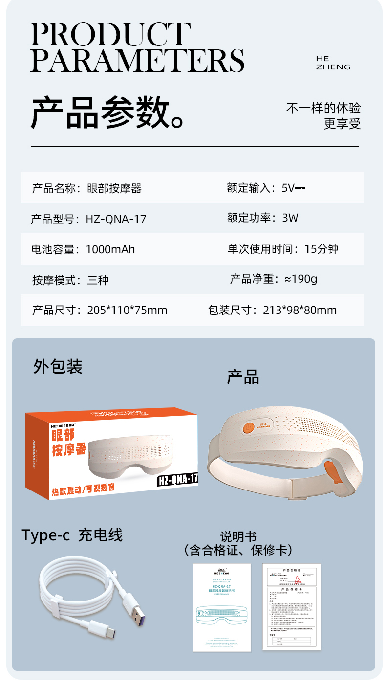 和正(HEZHENG) 眼部按摩器 HZ-QNA-17 1000mah 橙色(单位:个)