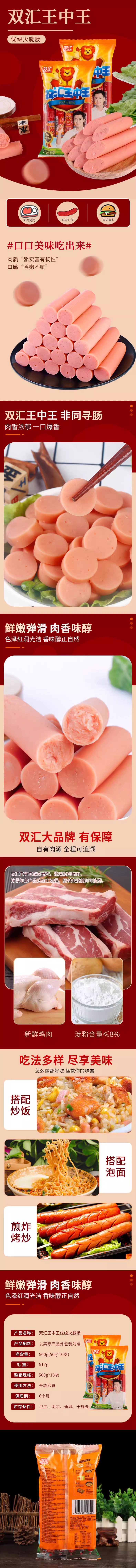 双汇 王中王火腿肠 即食袋装 50g*10支*2袋 红色(单位:袋)