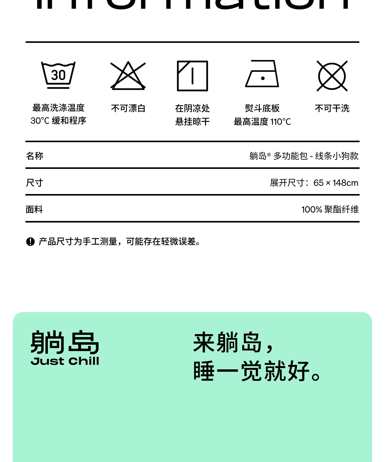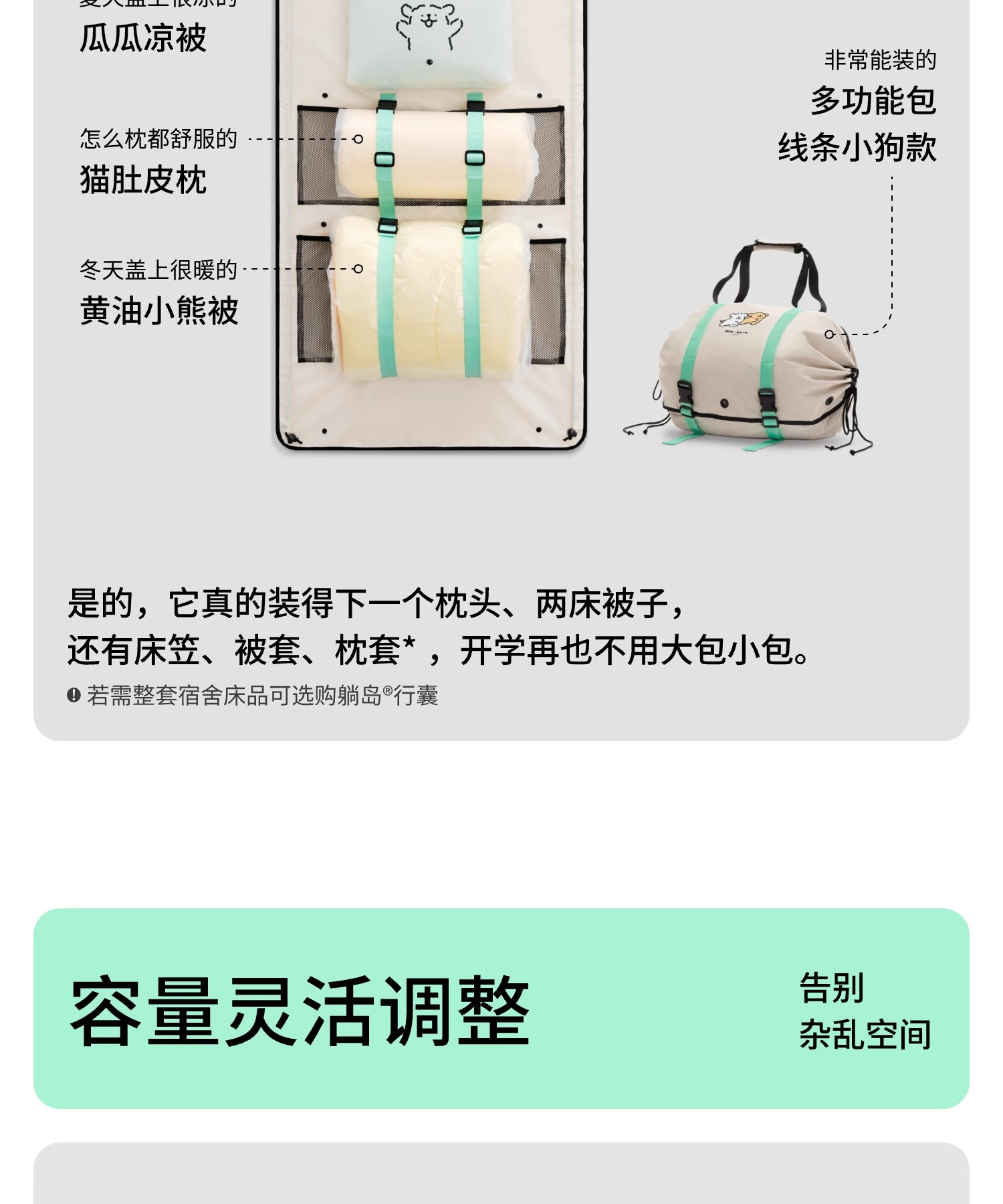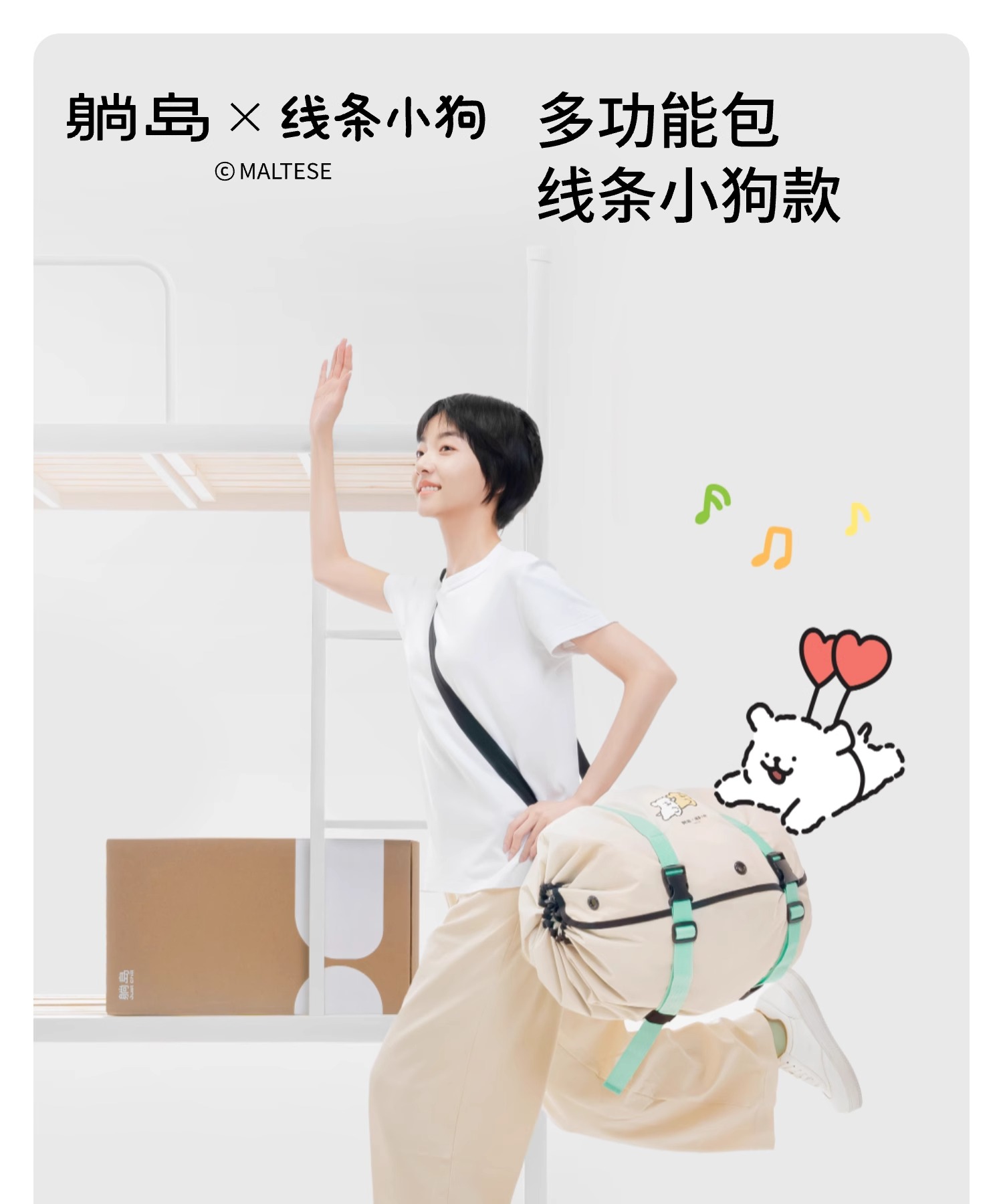 躺岛 行囊专用多功能收纳包 线条小狗款 展开尺寸:65*148cm 白色(单位:个)
