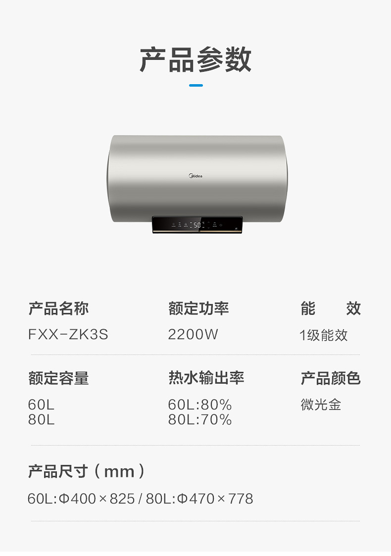 美的(Midea) 电热水器 F8022-ZK3S(HE) 80升 微光金(单位:台)