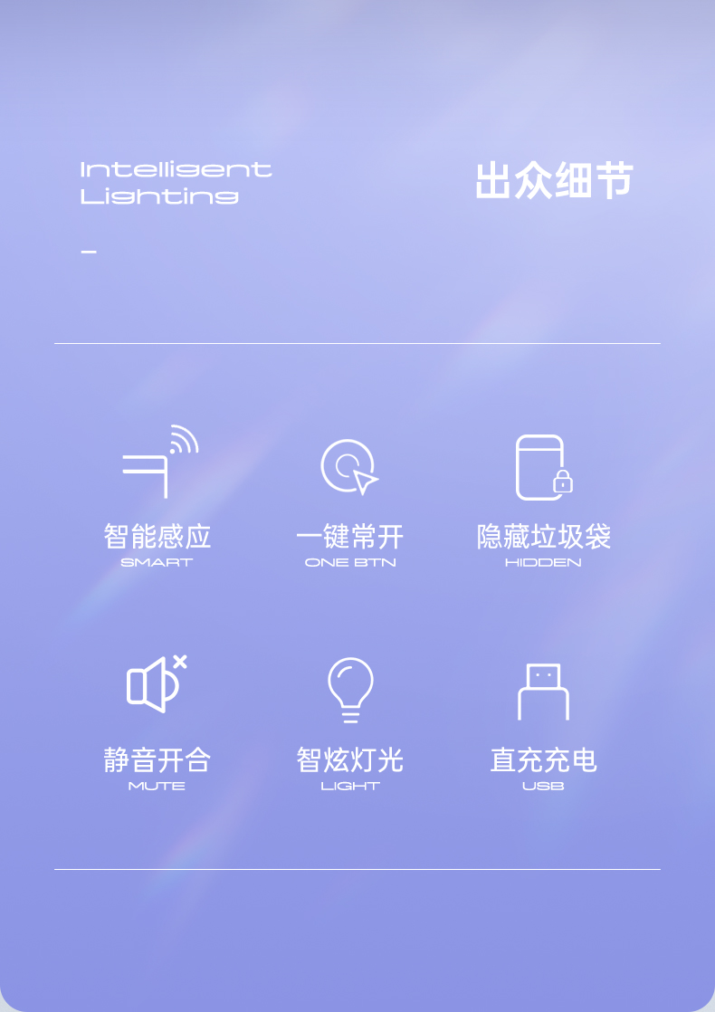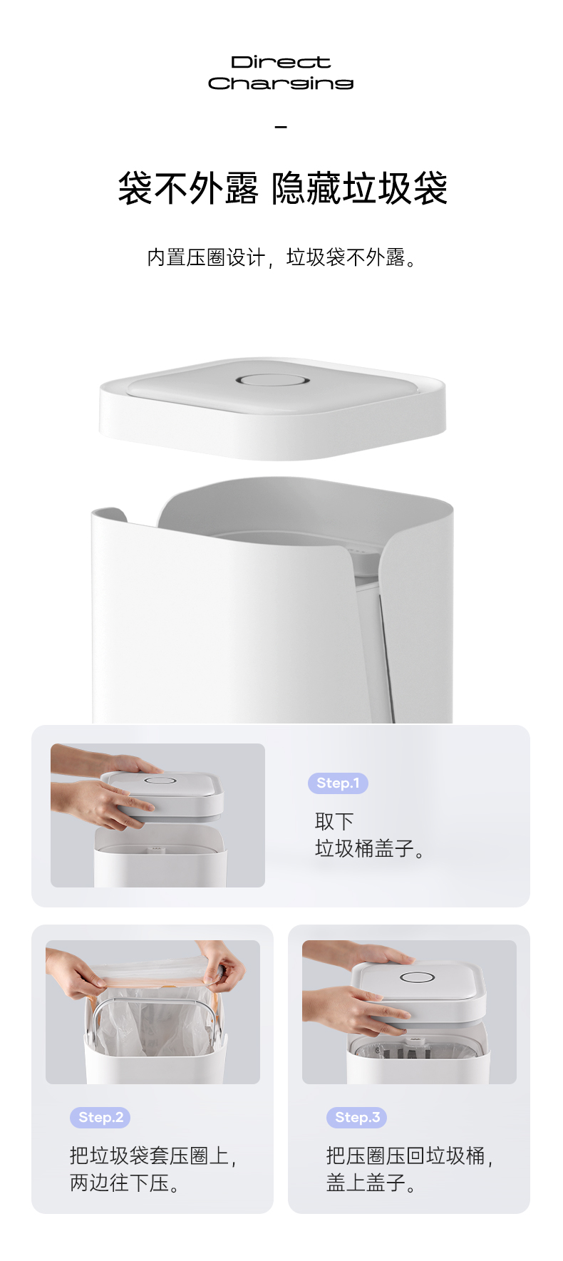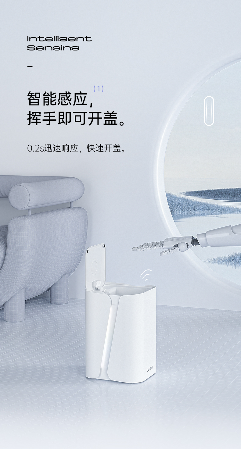 洁安惠 塑料款智炫灯光感应垃圾桶 888D 容量15L(直充款) 白色(单位:台)