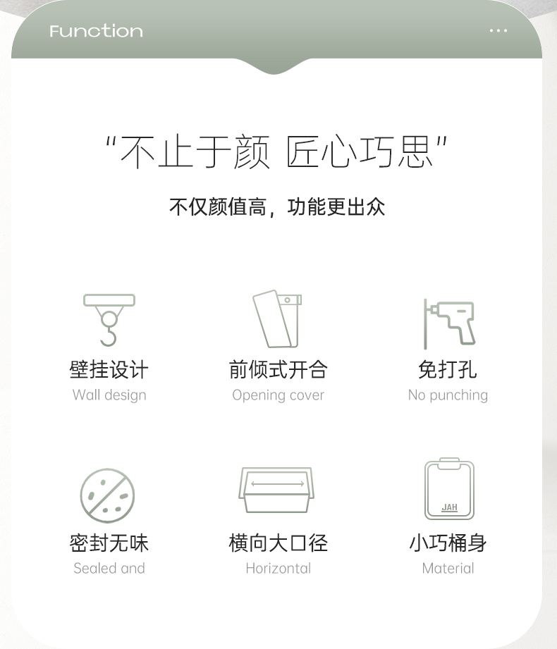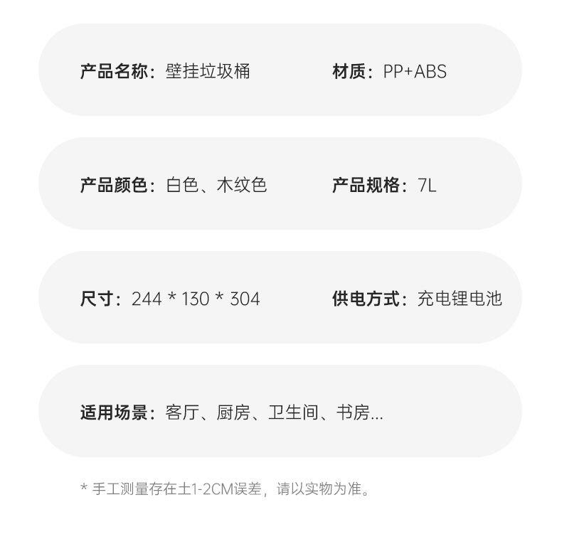 洁安惠 前倾式智能壁挂垃圾桶 563D 容量7升 灰色(单位:台)