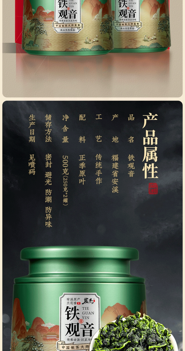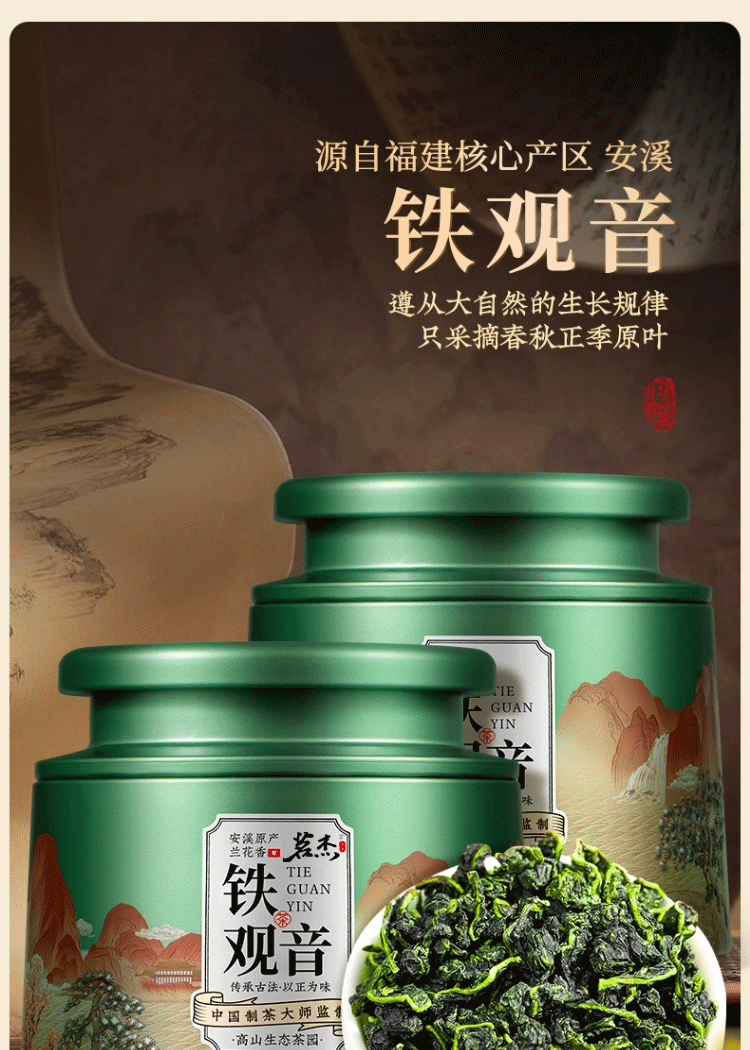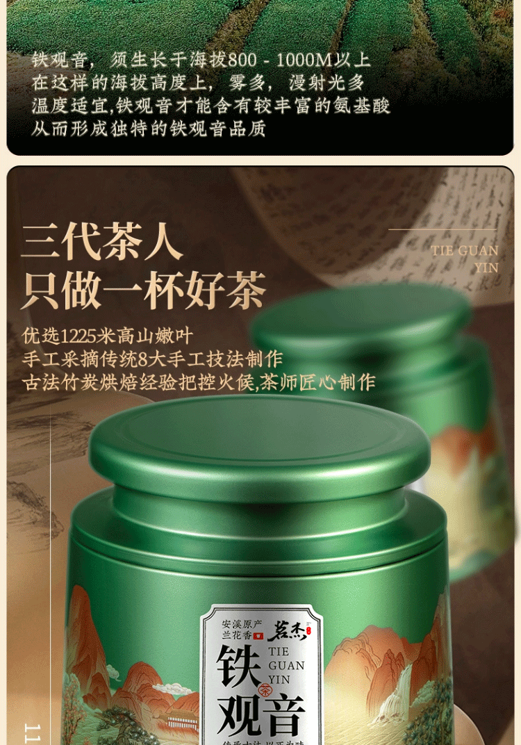 茗杰 茶叶 正宗安溪铁观音 500g 绿色(单位:罐)