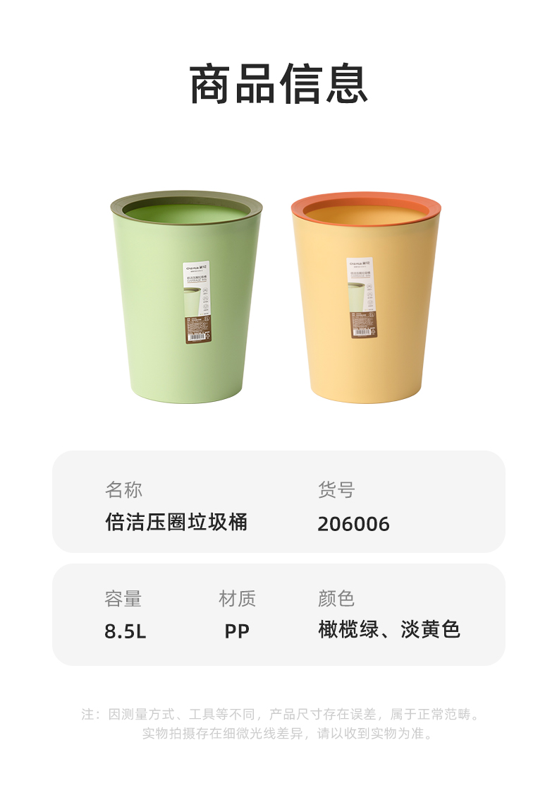 茶花(CHAHUA) 倍洁压圈垃圾桶 206006 8.5L 混色(单位:个)