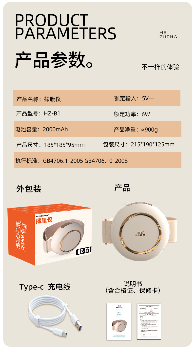 和正(HEZHENG) 揉腹仪腰部按摩器腹部按摩仪 HZ-B1 产品重量:900g 橙色(单位:个)