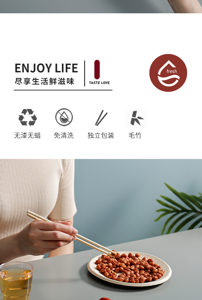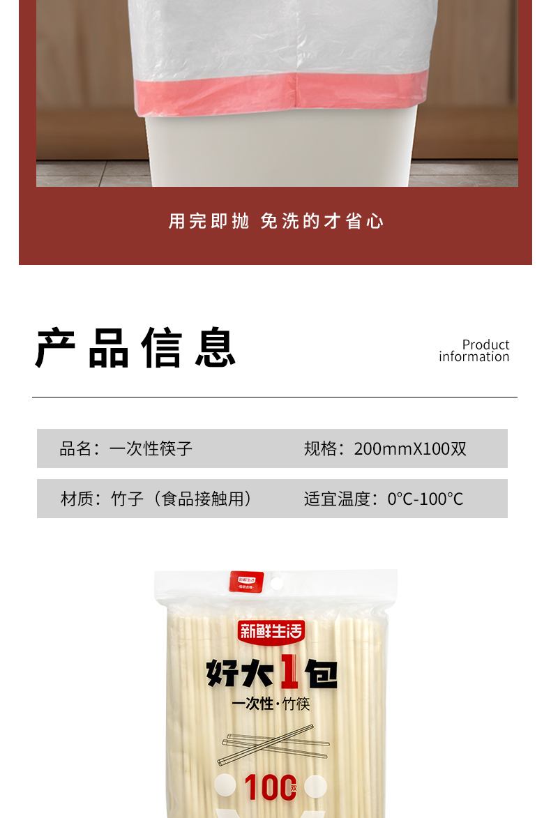 新鲜生活 一次性筷子100双长竹筷子独立包装 SH-7453 100双 本白色(单位:包)