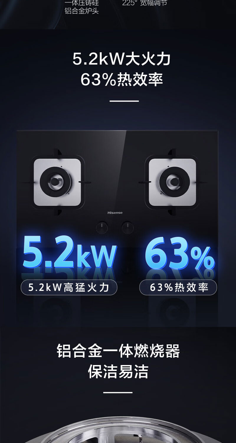 海信(Hisense) 燃气灶 家用大火力灶家用猛火灶 一级能效 JZT-B322G 5.2kw 黑色(单位:台)