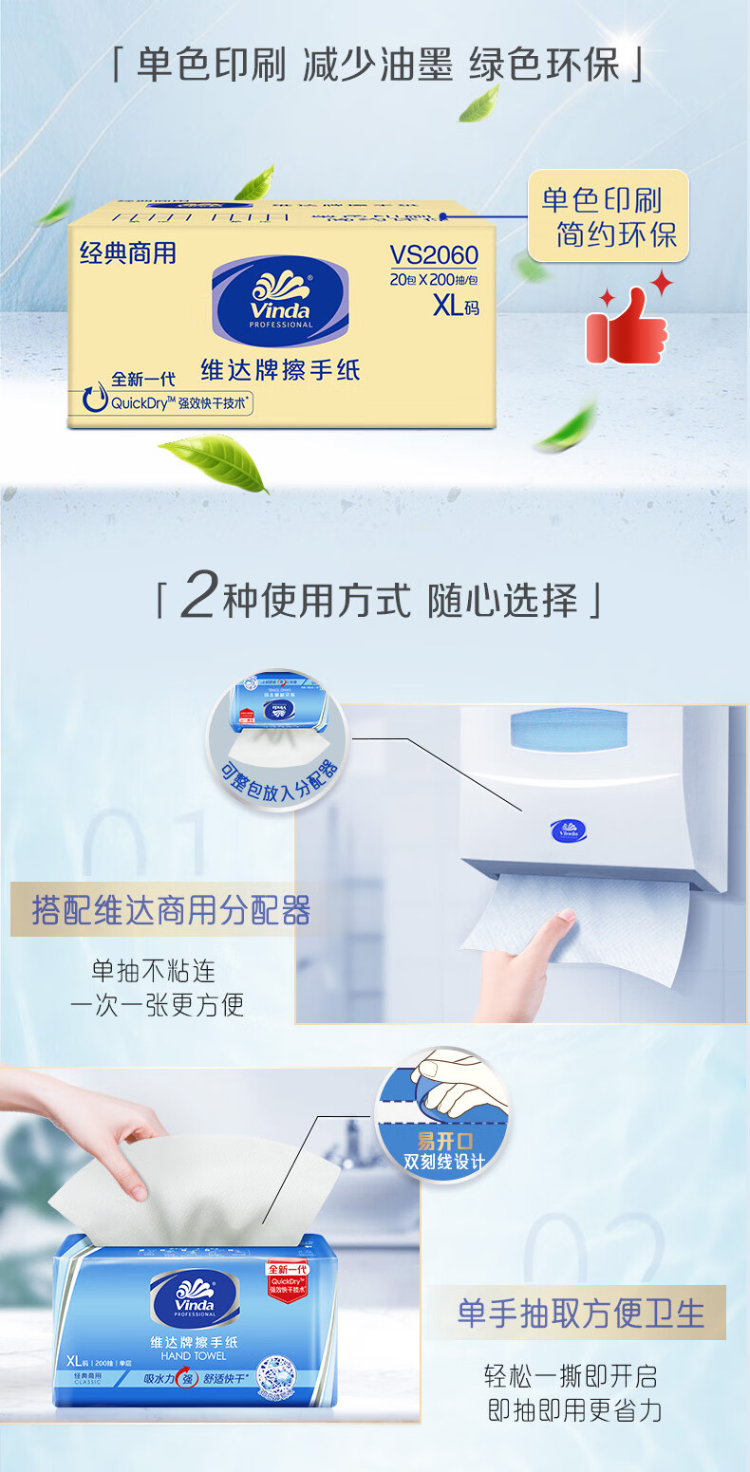 维达 抽取式商用擦手纸 VS2060 1层200抽*20包 蓝色(单位:箱)