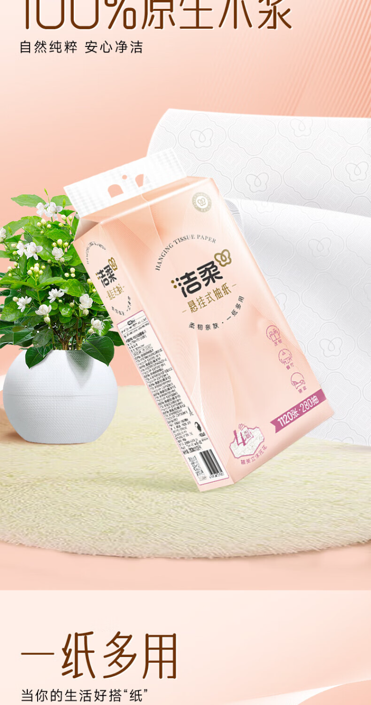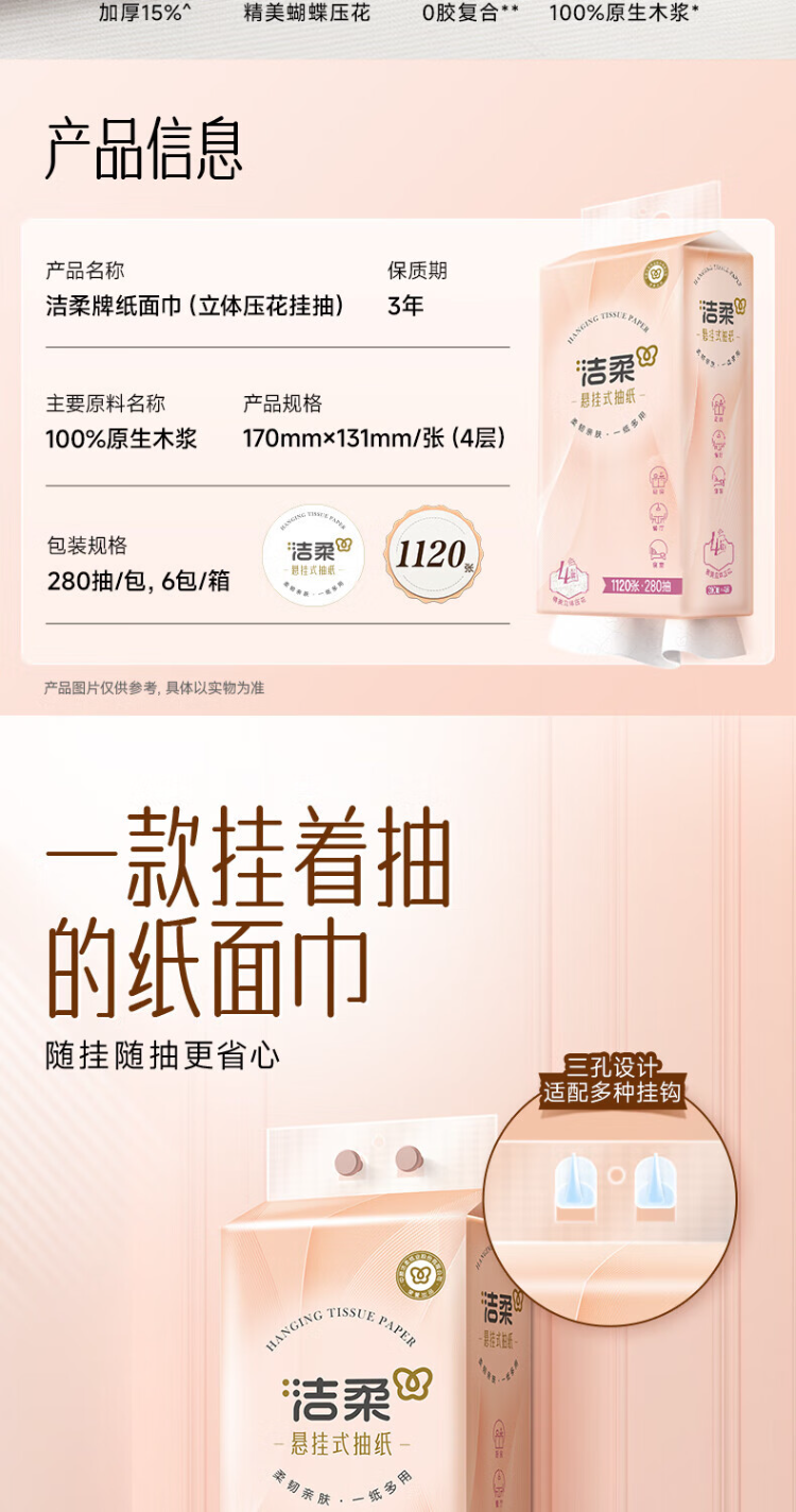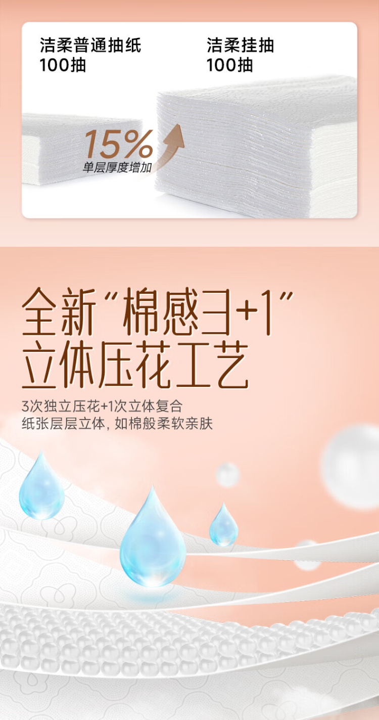 洁柔(C&S) 立体压花挂抽抽纸 GR227 4层280抽1提 粉色(单位:提)