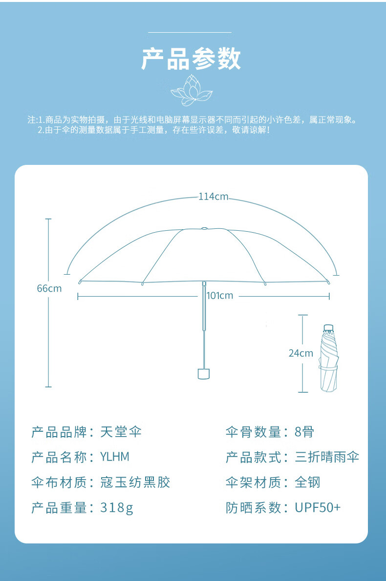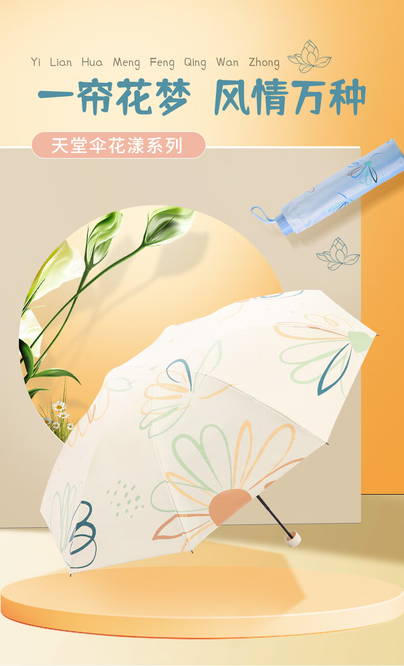 天堂 三折晴雨伞 30928EPD 57cmX8骨 若夫粉(单位:把)