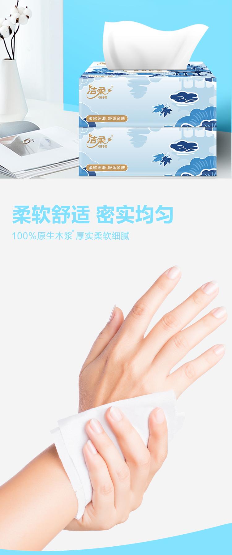 洁柔(C&S) 甄选软抽纸 TR097201A 3层100抽180x133mm*3包 白色(单位:提)