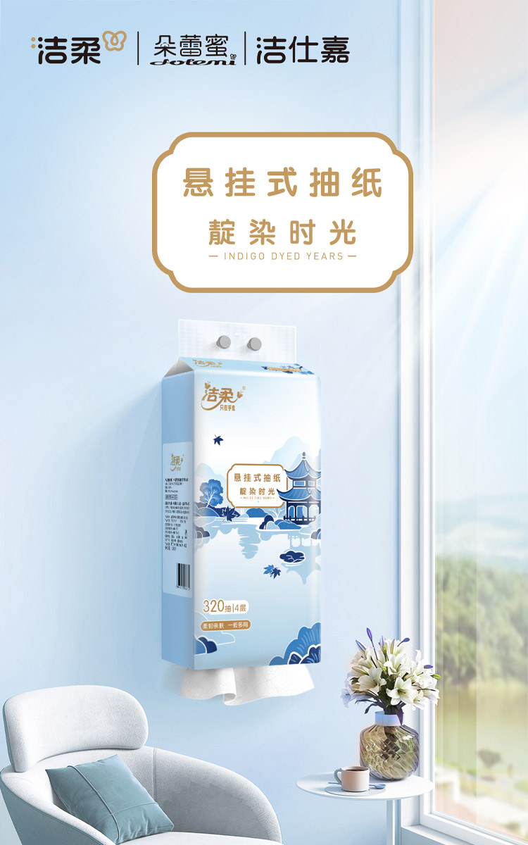 洁柔(C&S) 甄选悬挂式抽纸面巾 TR097301A 4层320抽 白色(单位:提)