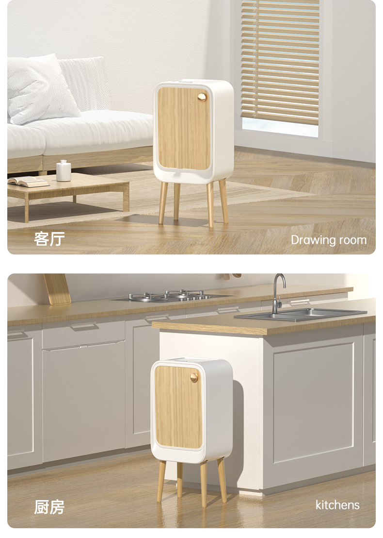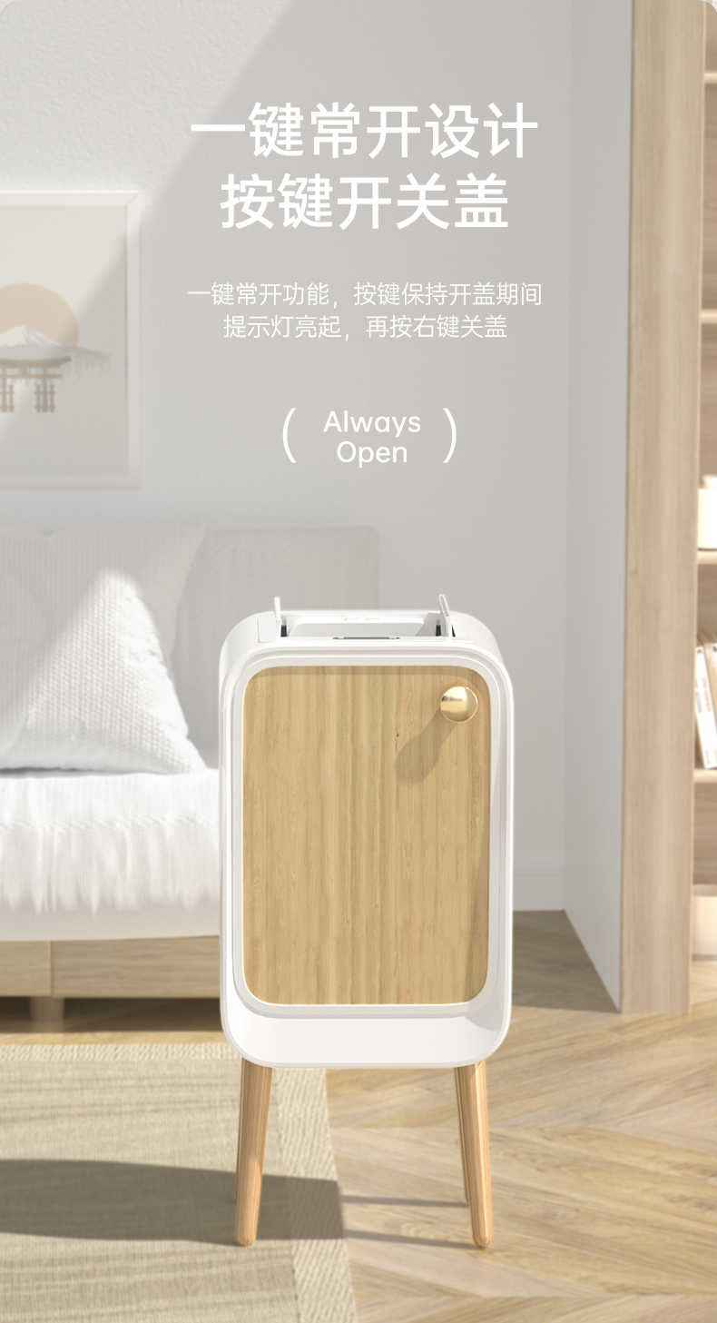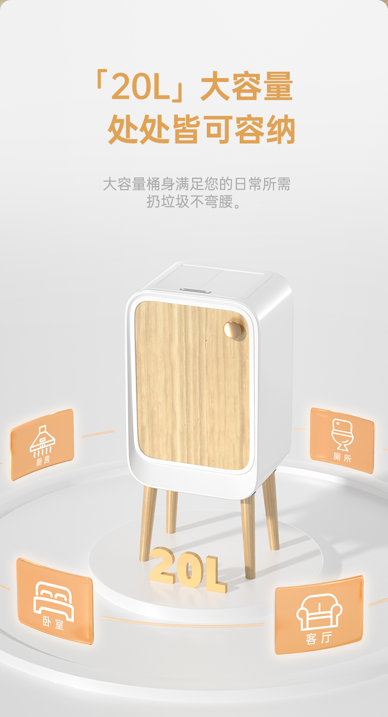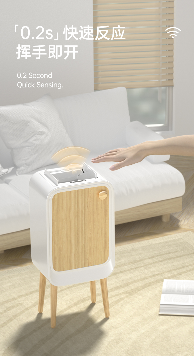 洁安惠 智能双开感应带木腿垃圾桶充电款+臭氧 9716DU 20升 木纹色(单位:台)