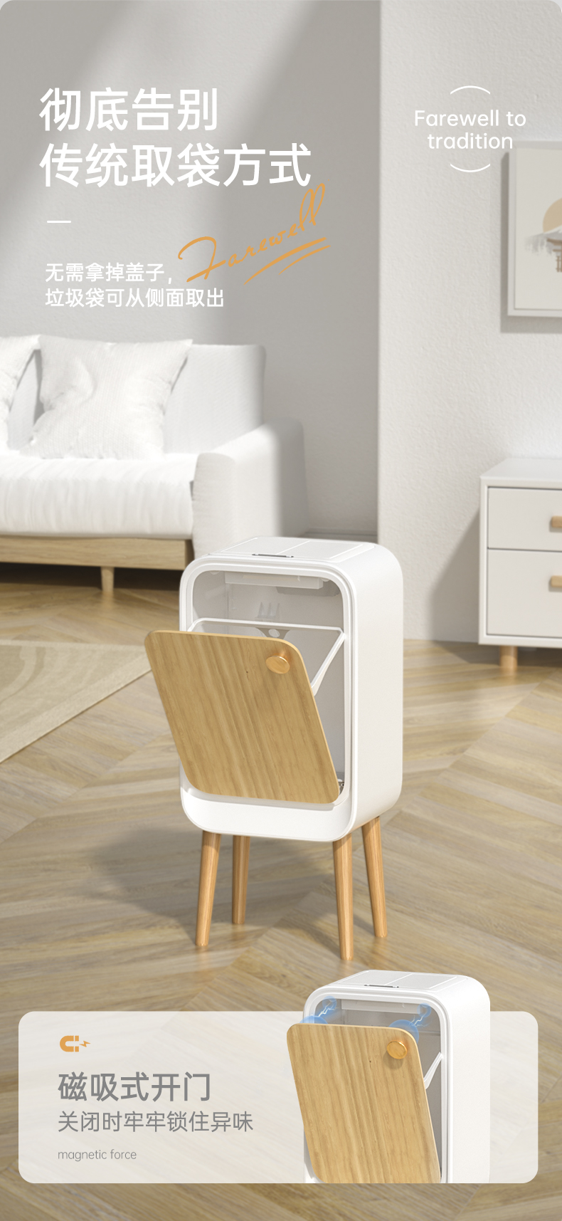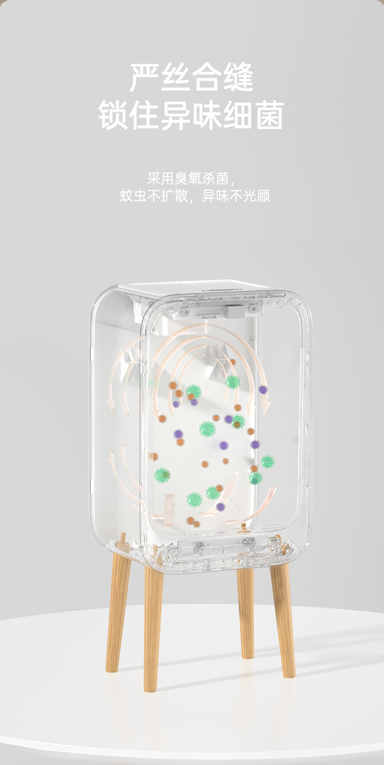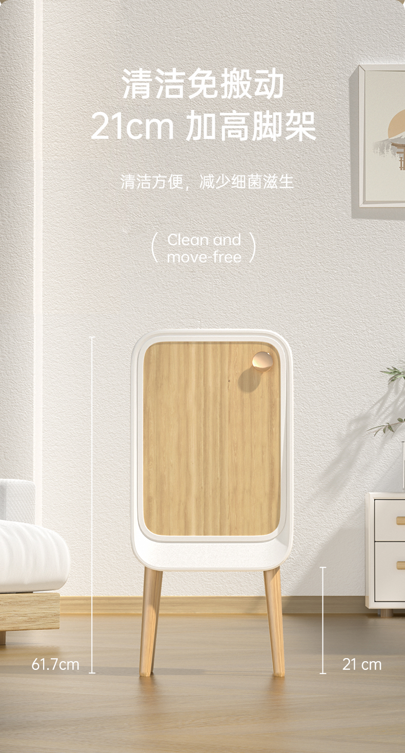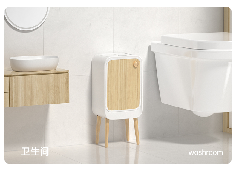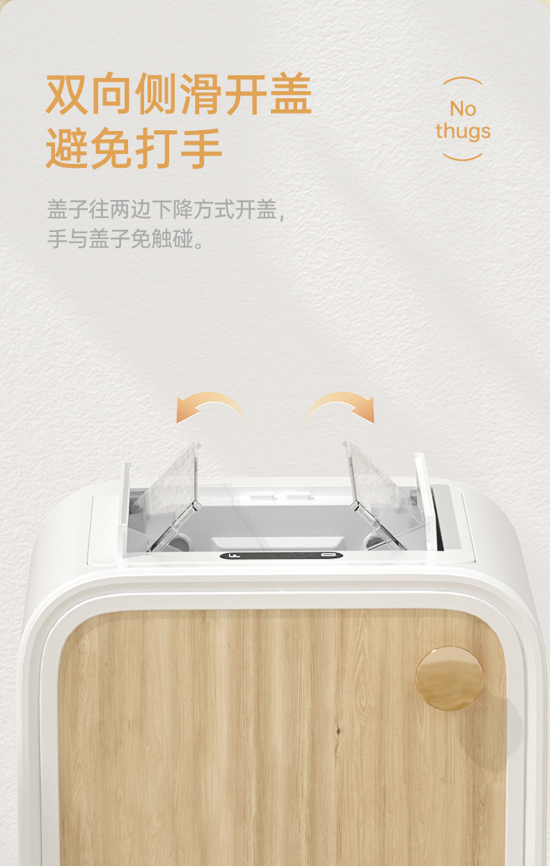 洁安惠 智能双开感应带木腿垃圾桶充电款+臭氧 9716DU 20升 木纹色(单位:台)
