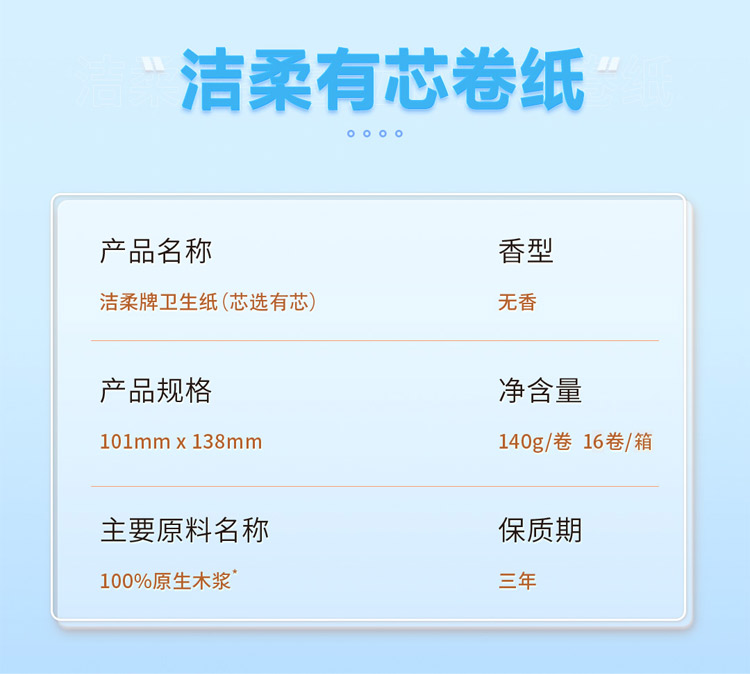 洁柔(C&S) 芯选有芯卷纸 TJ020501A 16卷 白色(单位:箱)
