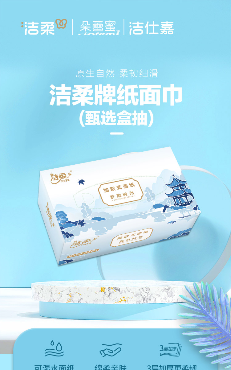 洁柔(C&S) 甄选盒抽纸面巾 TH169801A 3层*100抽*3盒 白色(单位:组)
