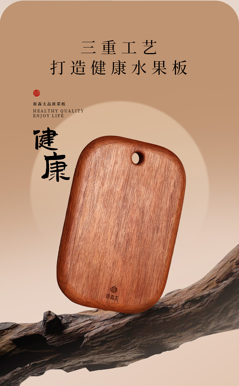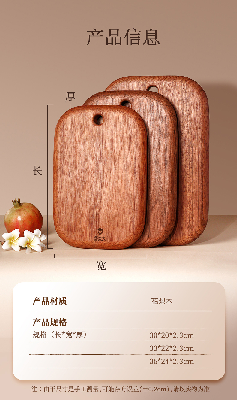 原森太 花梨木整木水果板 02.YSTCB453 36x24x2.3cm【大号】 褐色(单位:块)