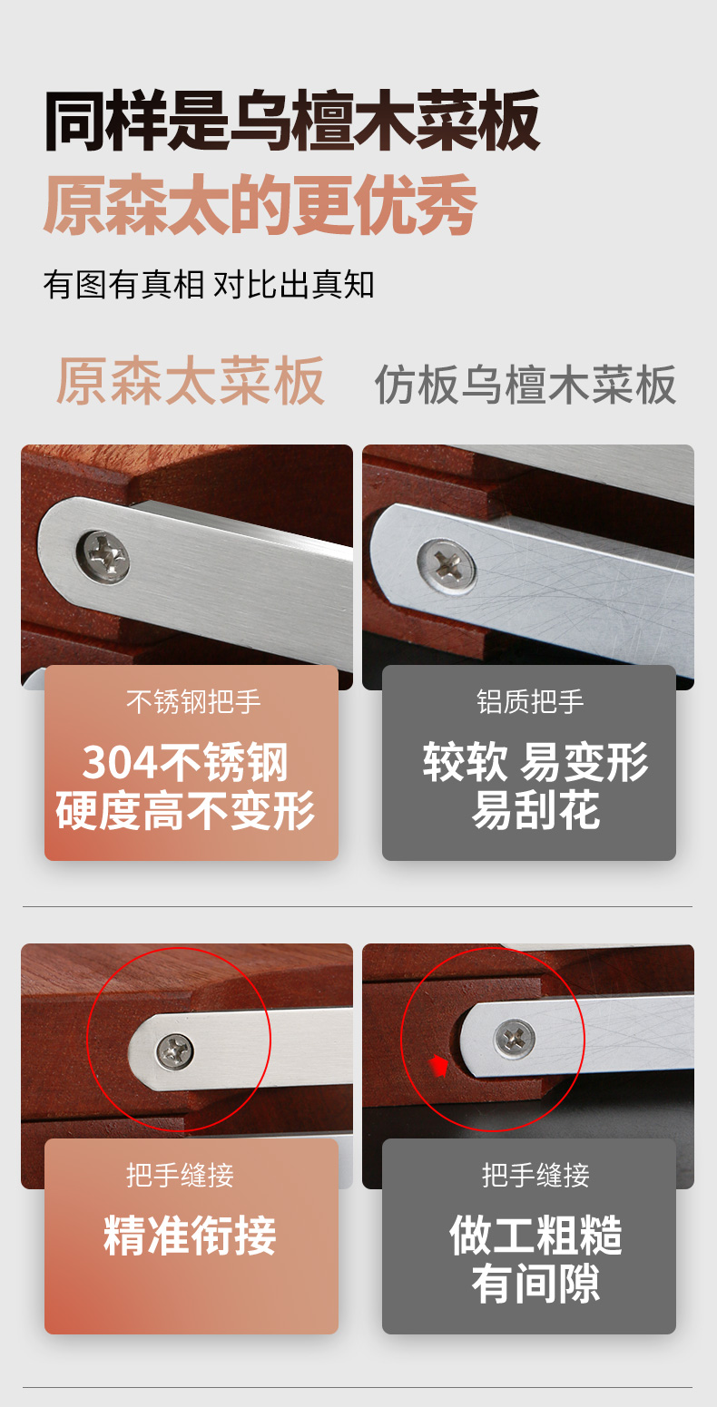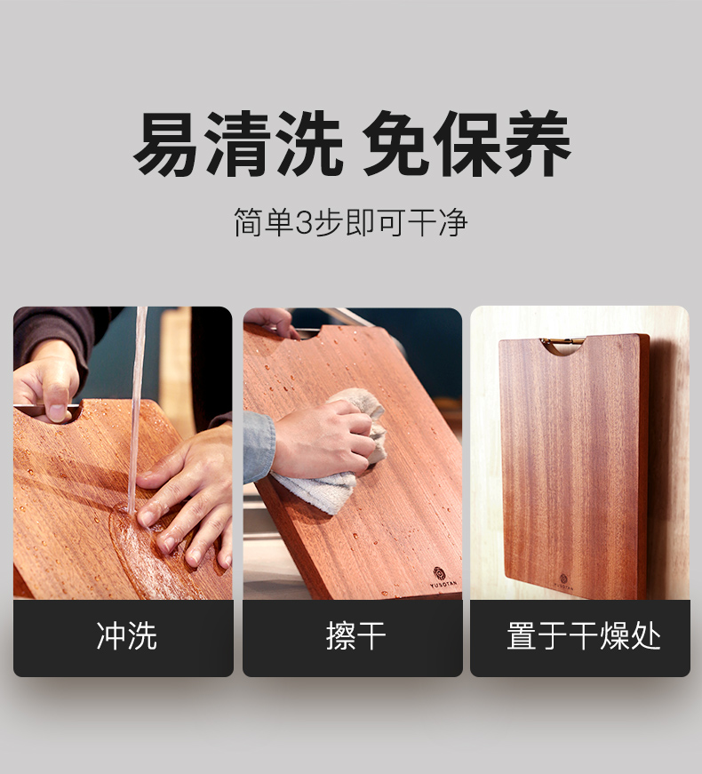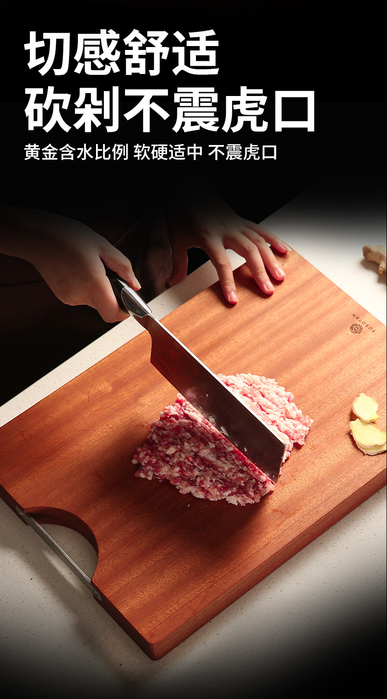 原森太 乌檀木整木菜板 (把手平型) 02.YSTCB0064 40*27*2.5CM【小号】 褐色(单位:块)