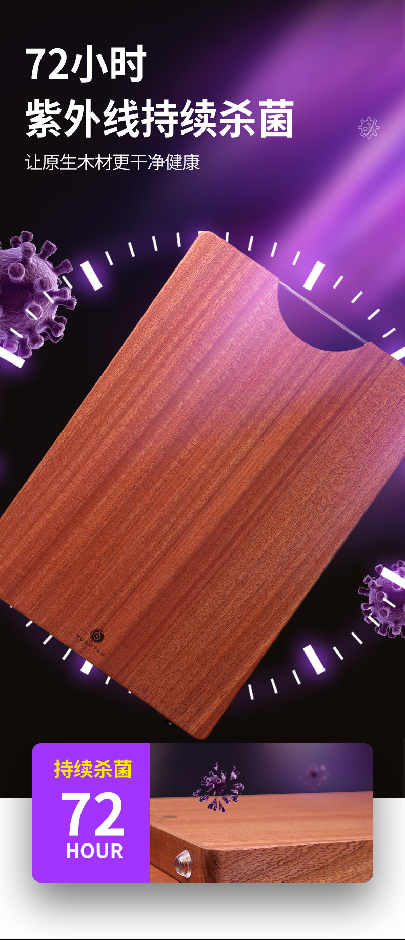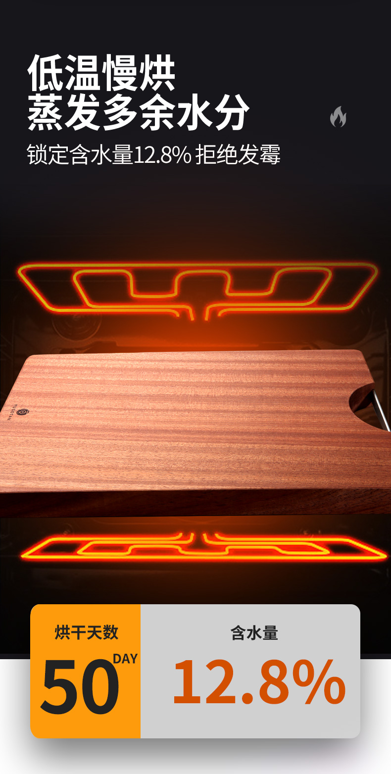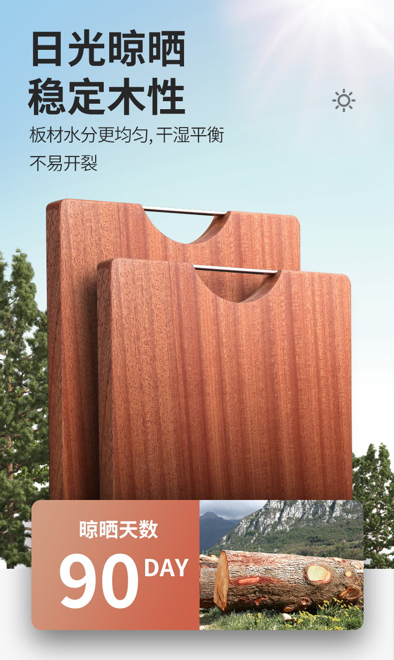 原森太 乌檀木整木菜板 (把手平型) 02.YSTCB0064 40*27*2.5CM【小号】 褐色(单位:块)