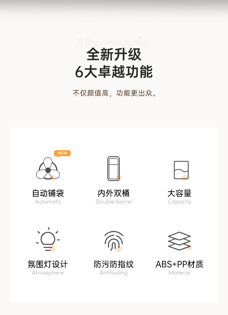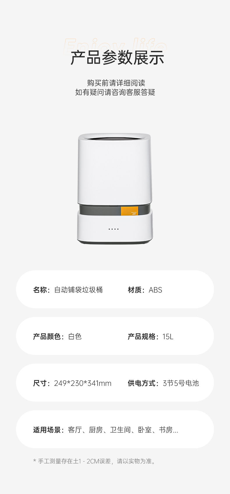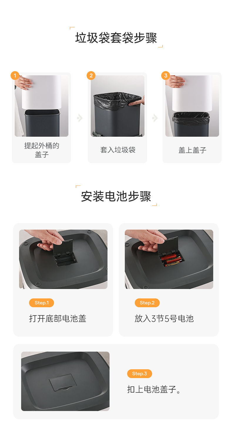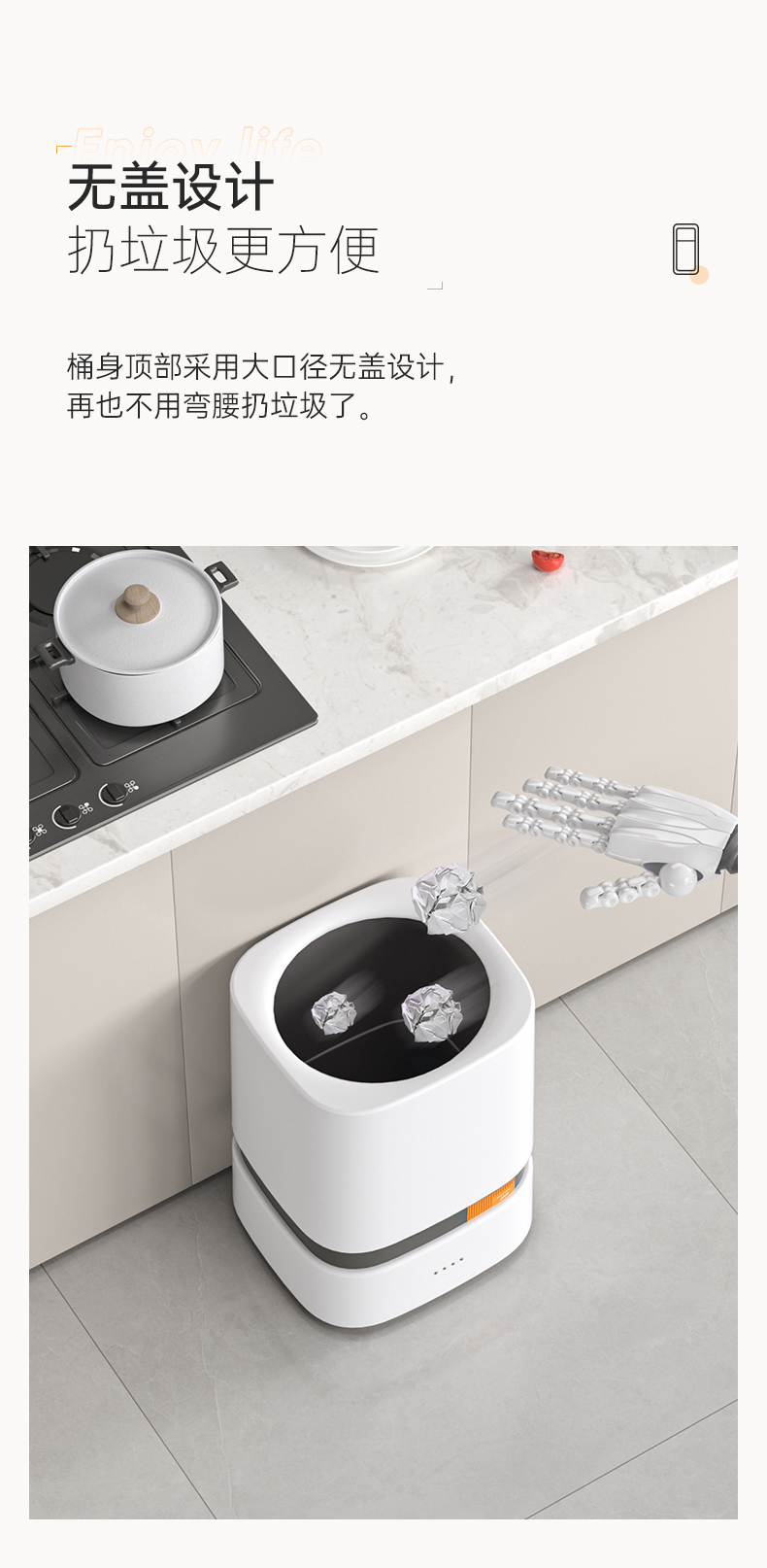 洁安惠 自动铺袋方形垃圾桶充电款 303D 15升 白色(单位:台)