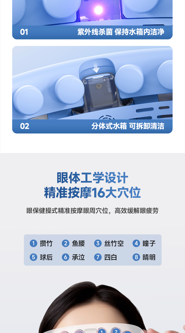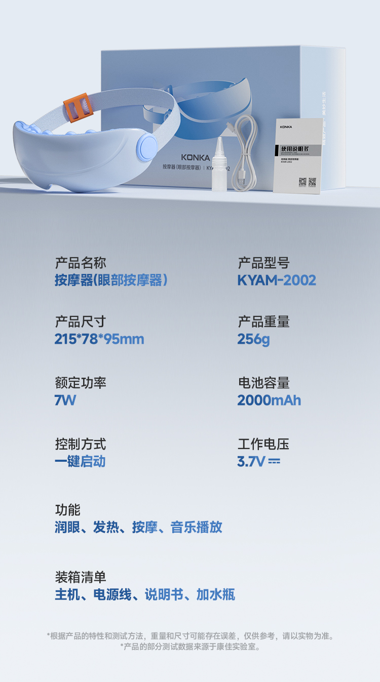 康佳(KONKA) 热敷眼罩雾化点震动式眼部按摩仪 KYAM-2002 2000mah 水蓝色(单位:件)