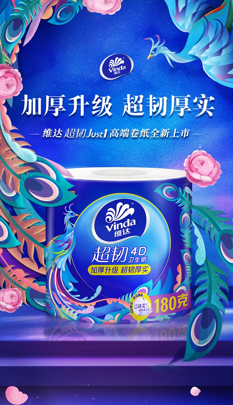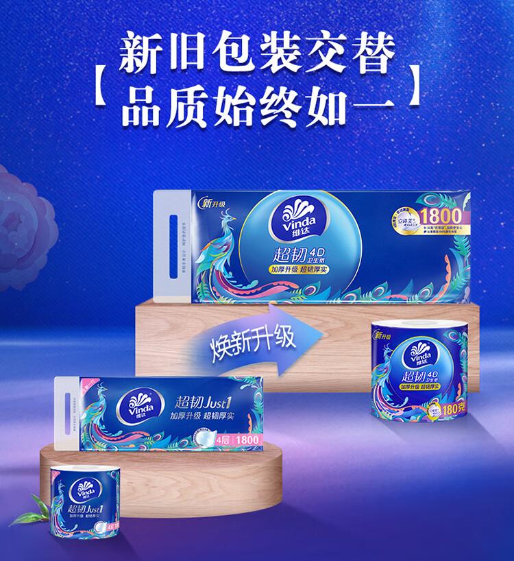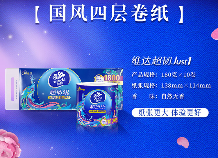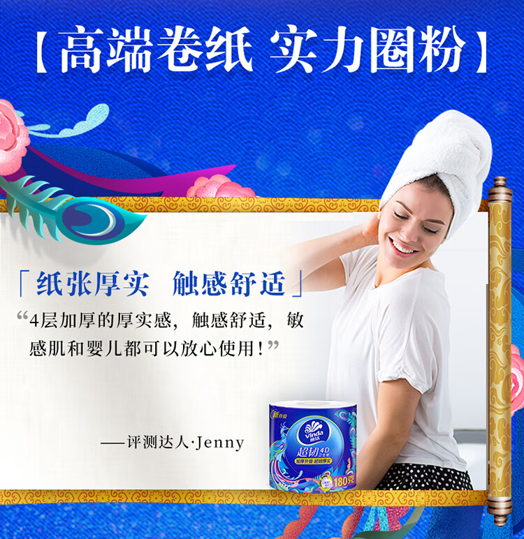 维达 有芯卷纸 V4688 4层180克*10卷 蓝色(单位:提)