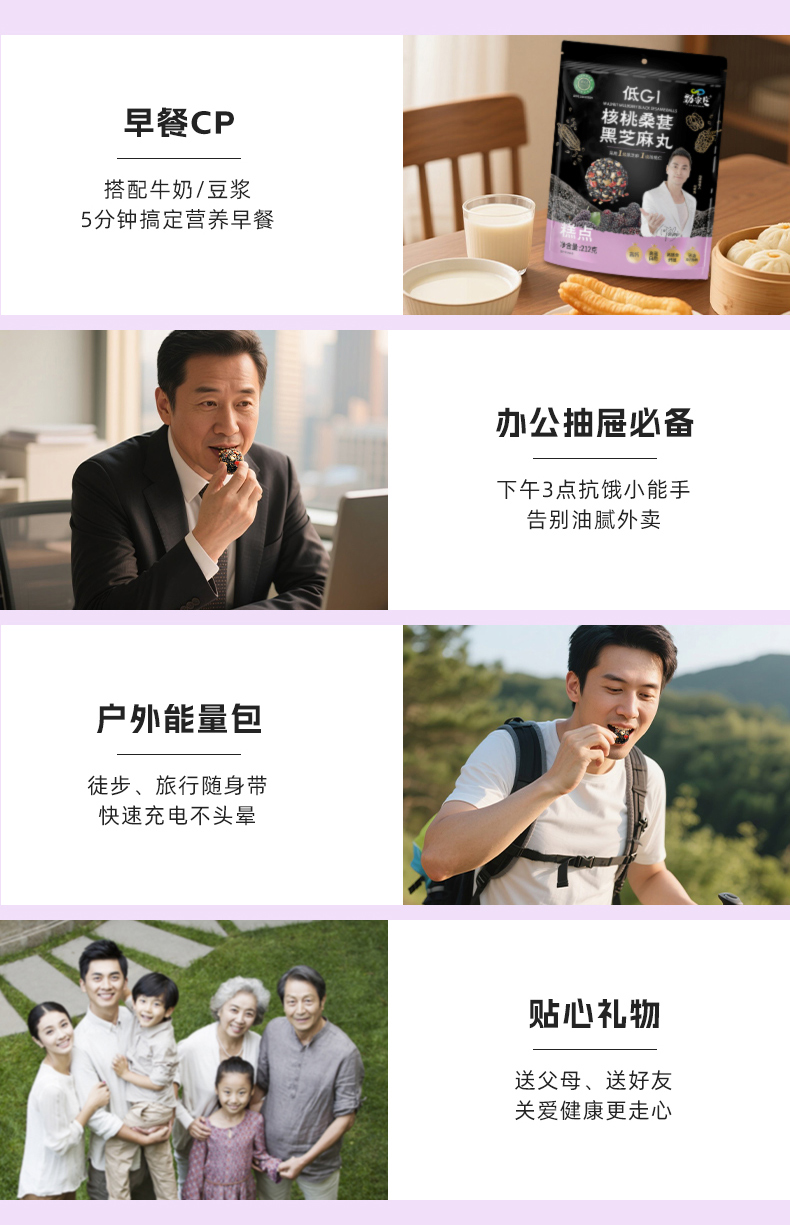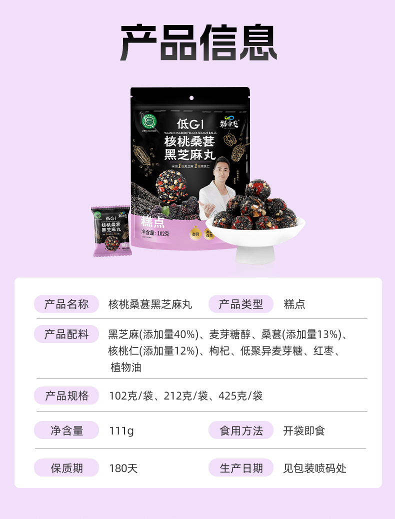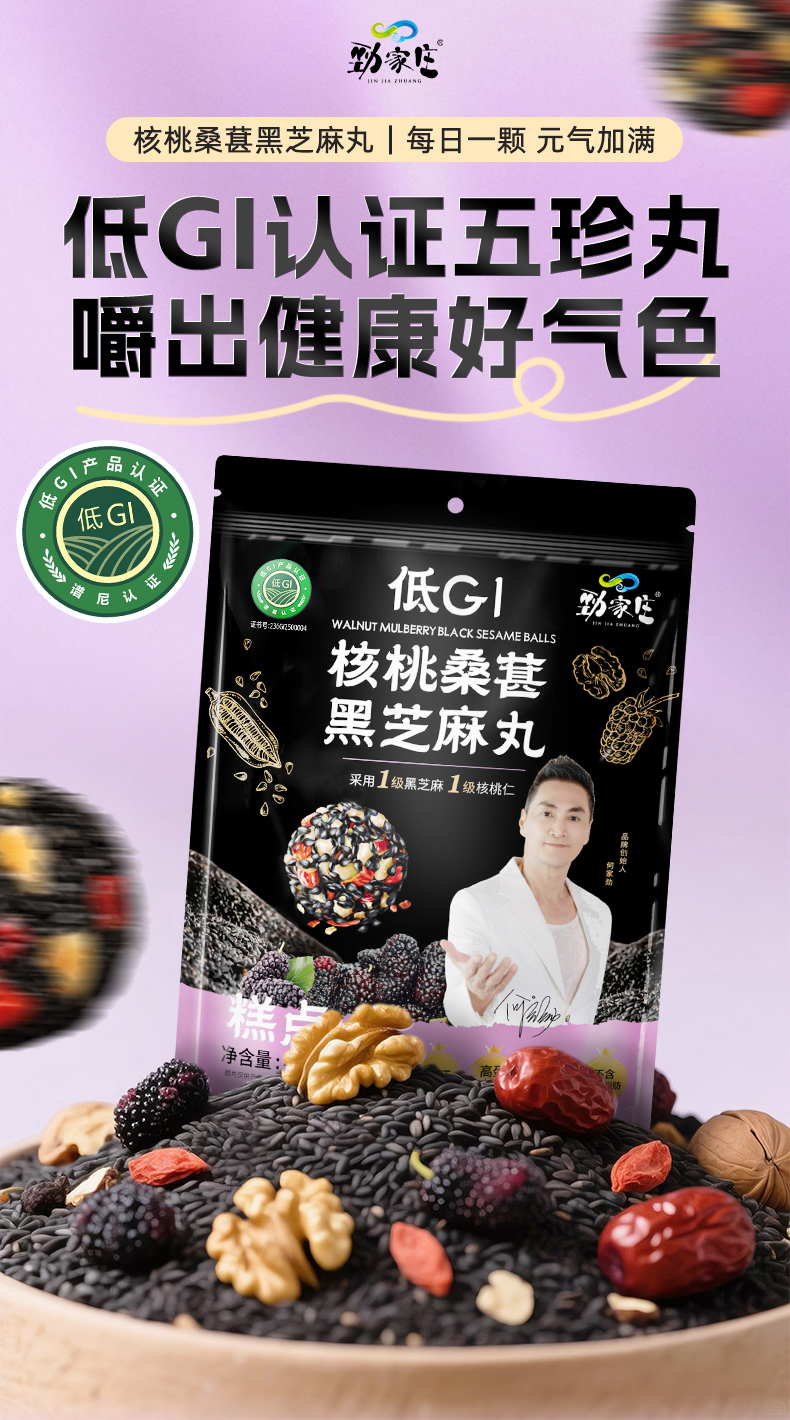 劲家庄 核桃桑椹黑芝麻丸 低GI 425克/袋 黑色(单位:袋)