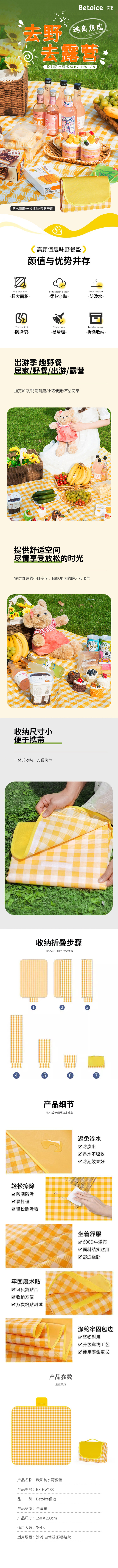 佰造 欣彩防水野餐垫 BZ-HW188 150×200cm 灰橙色(单位:个)