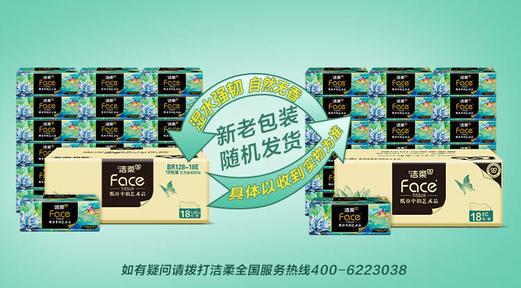洁柔(C&S) 艺术油画纸巾抽纸 BR128-18E 4层80抽*18包 浅杉绿(单位:箱)