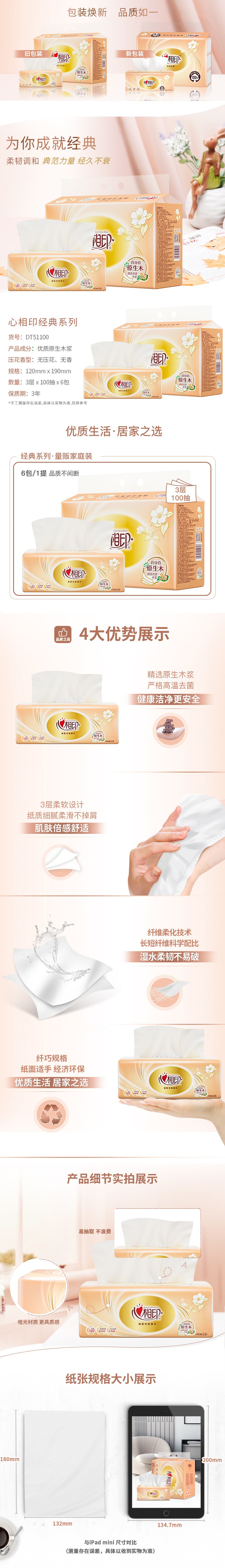 心相印 抽纸 DT51100 120mm*190mm 3层100抽*6包*2提 白色(单位:组)