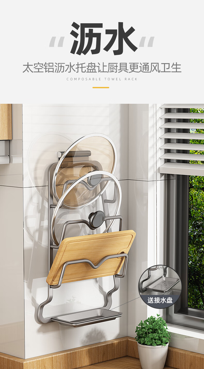 优勤(YOUQIN) 太空铝S款锅盖架(铝接水盘) CZ-TKLSKGGJ(LJSP)-QHS#-192Y 24*7*37.5cm 不锈钢色(单位:个)