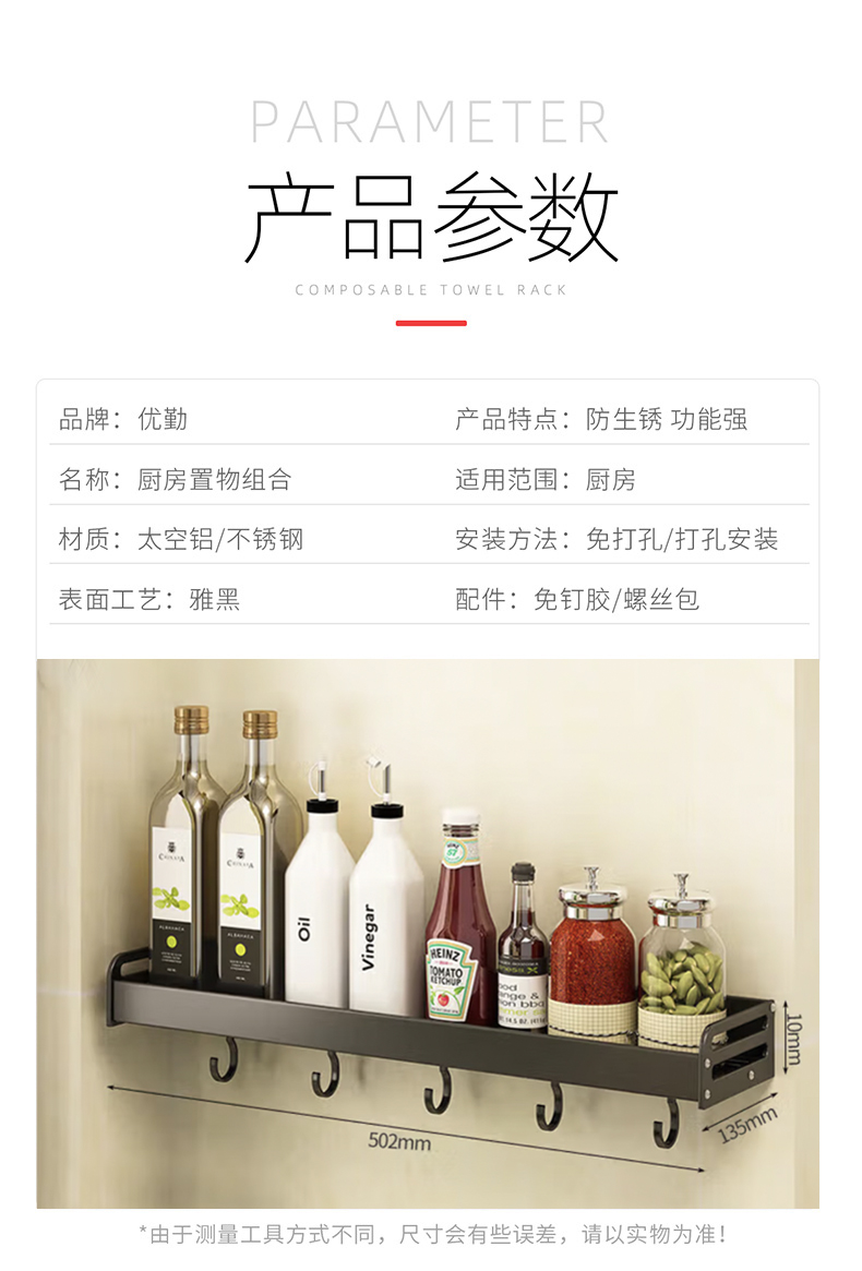 优勤(YOUQIN) 调味架 CZ-TWJ-50-146Y 50cm 黑色(单位:个)