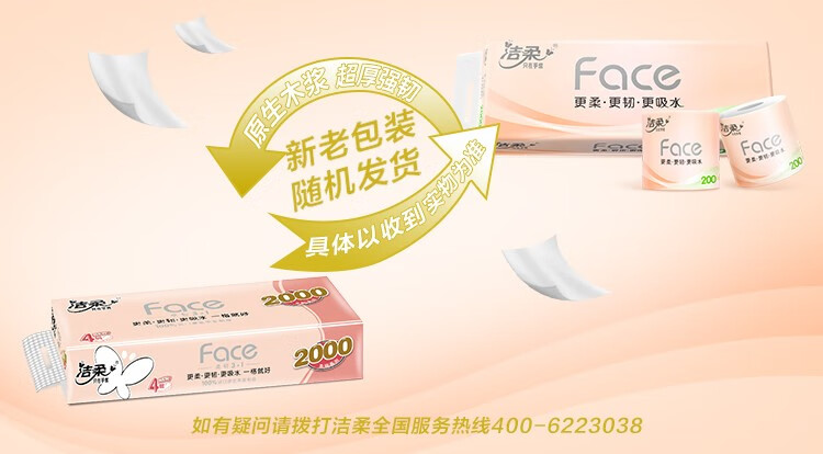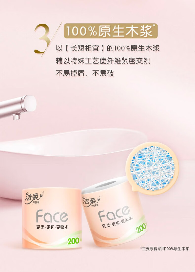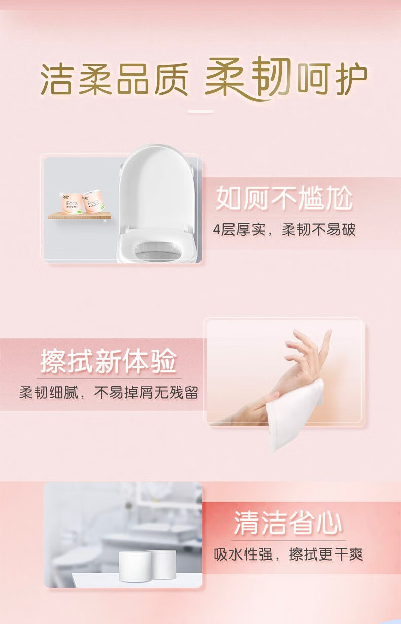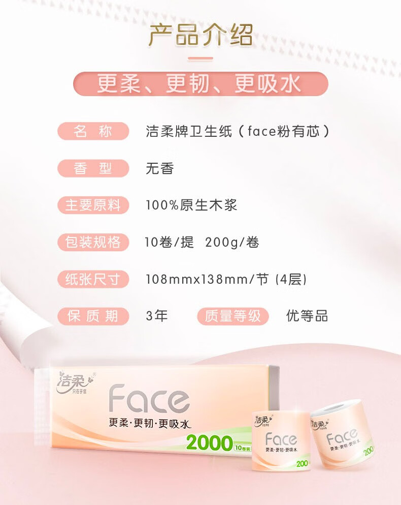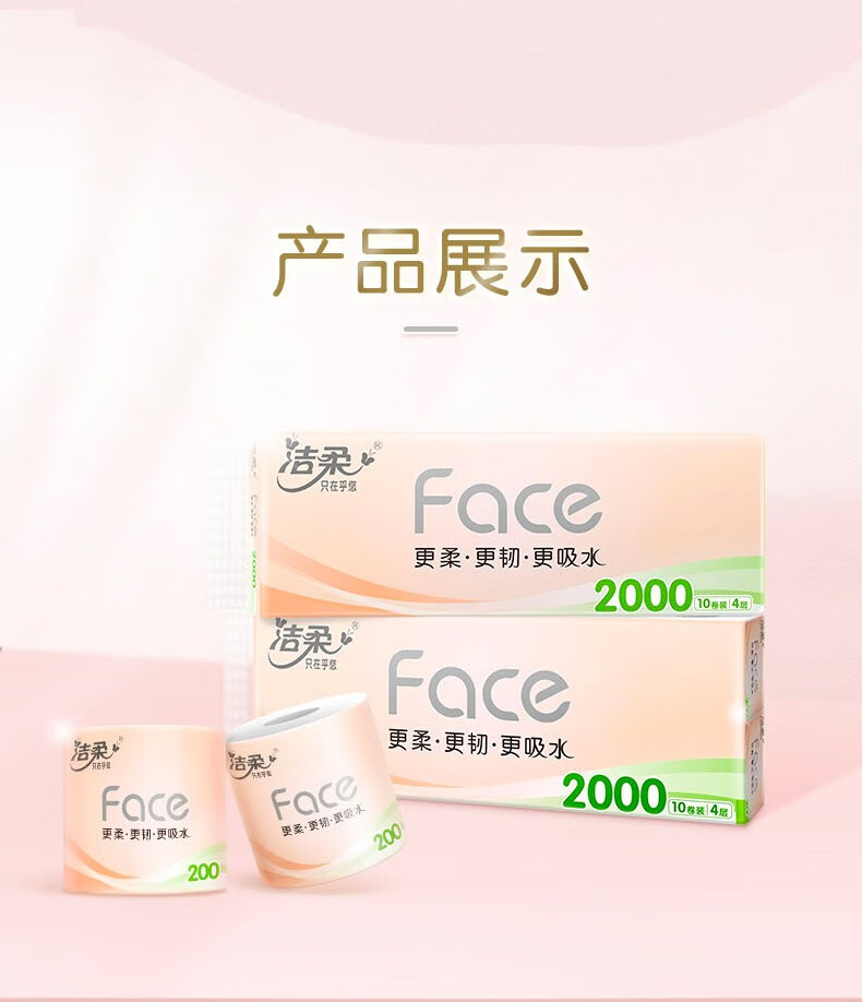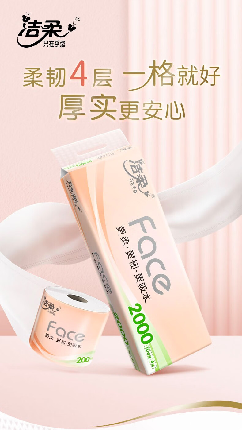 洁柔(C&S) 粉Face有芯卷纸 PJ214-10-1 4层200克10卷 粉色(单位:提)