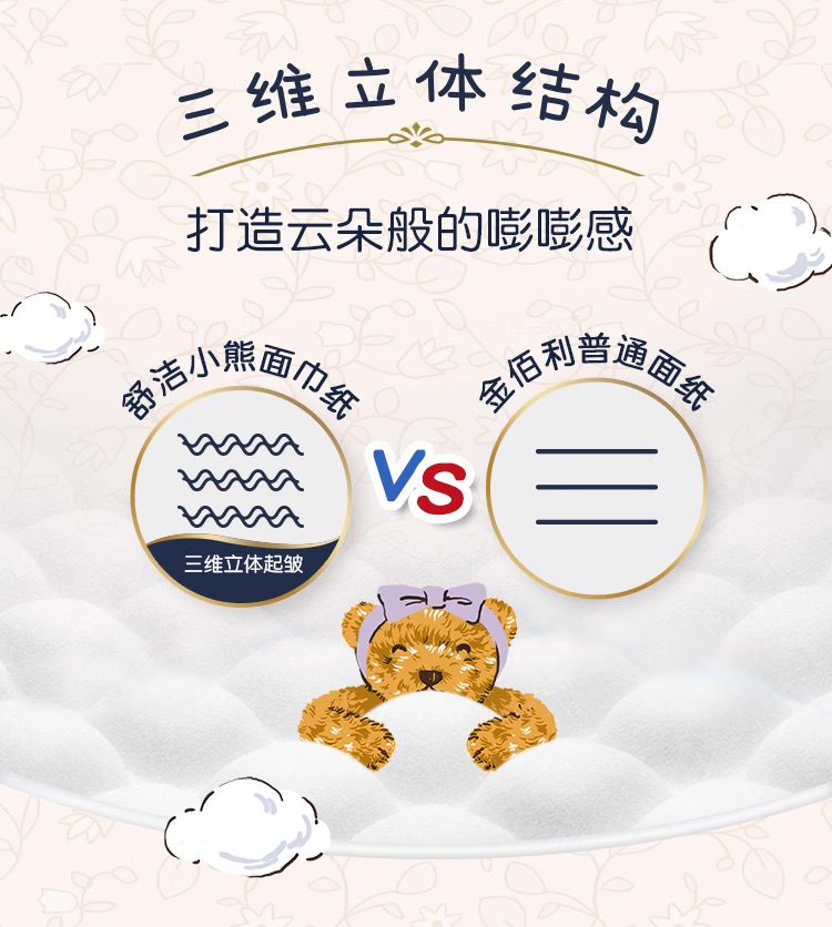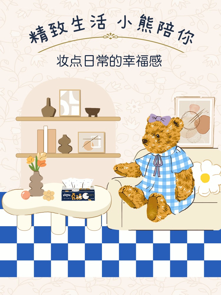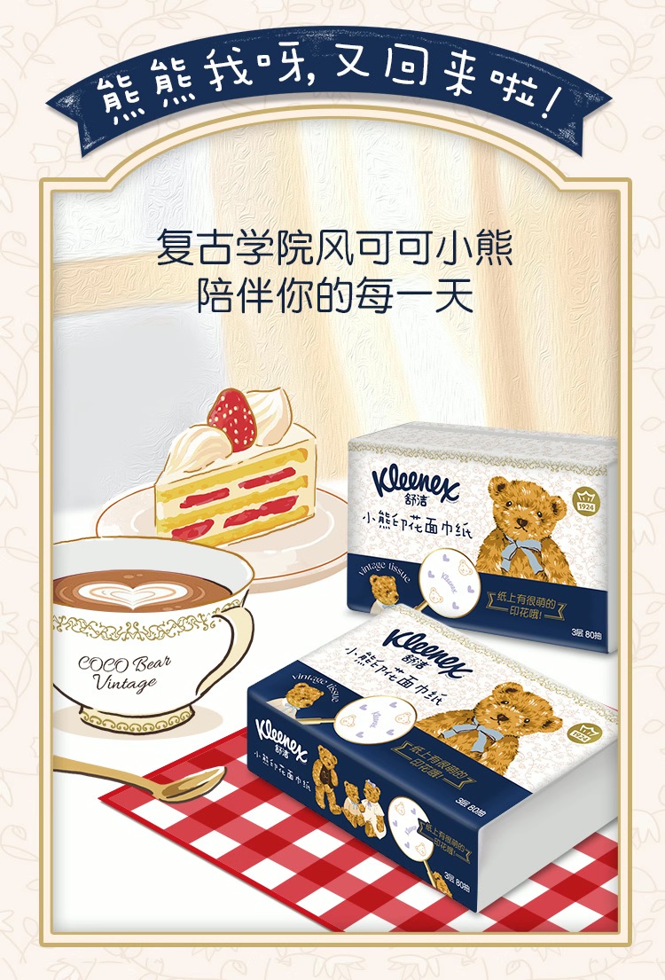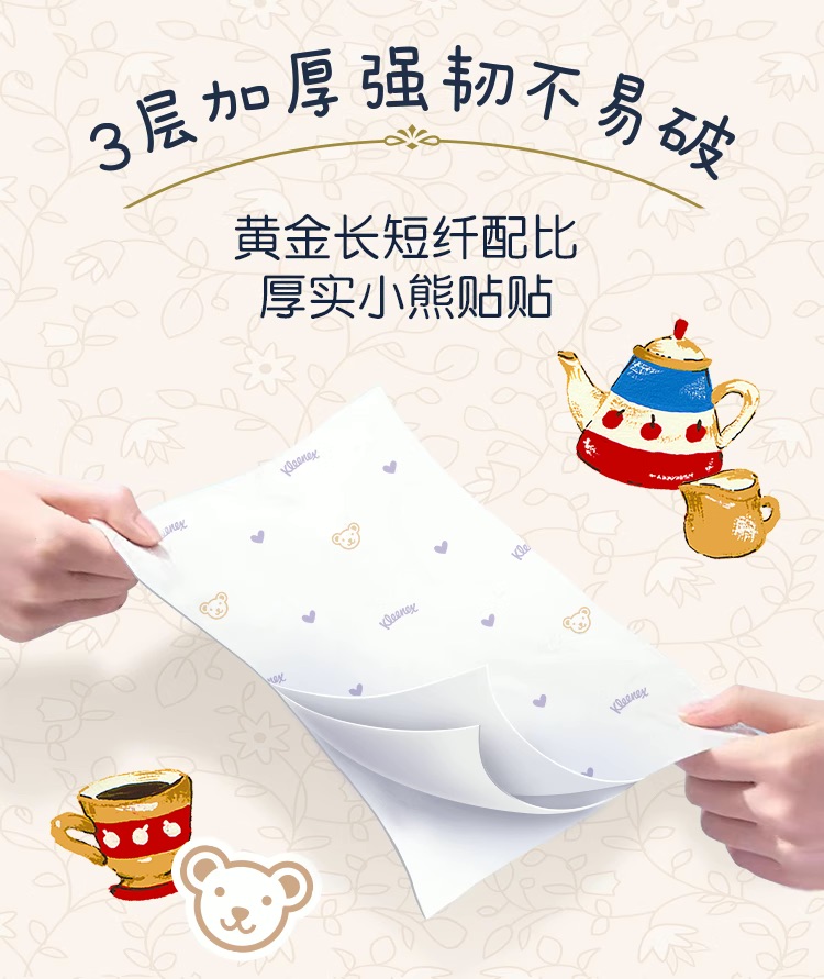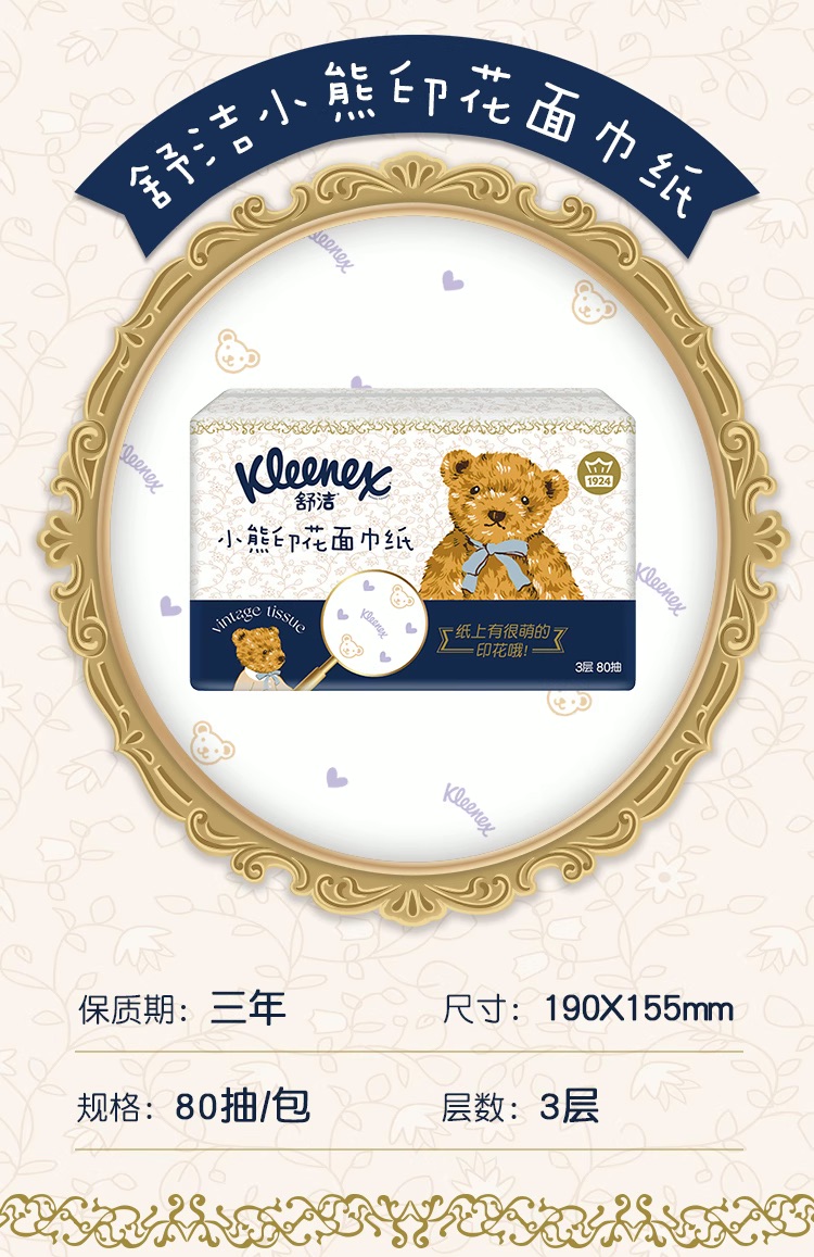 舒洁(Kleenex) 印花抽纸 小熊印花 3层80抽16包 宝石蓝(单位:提)