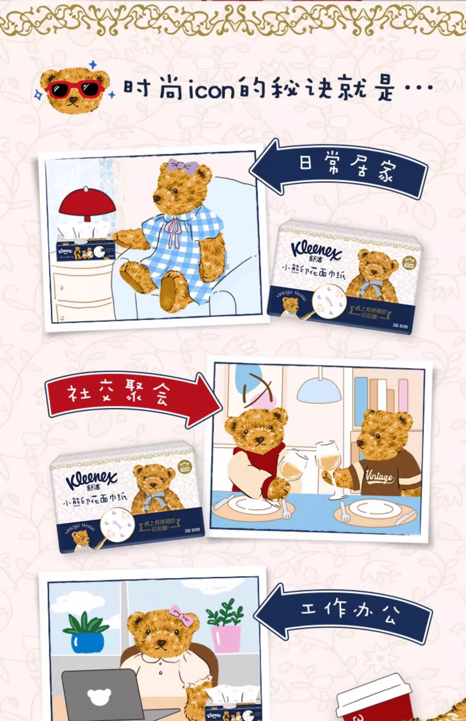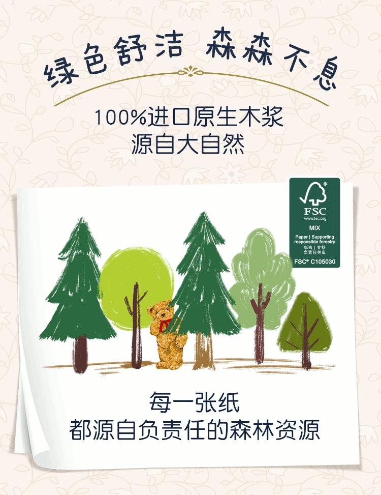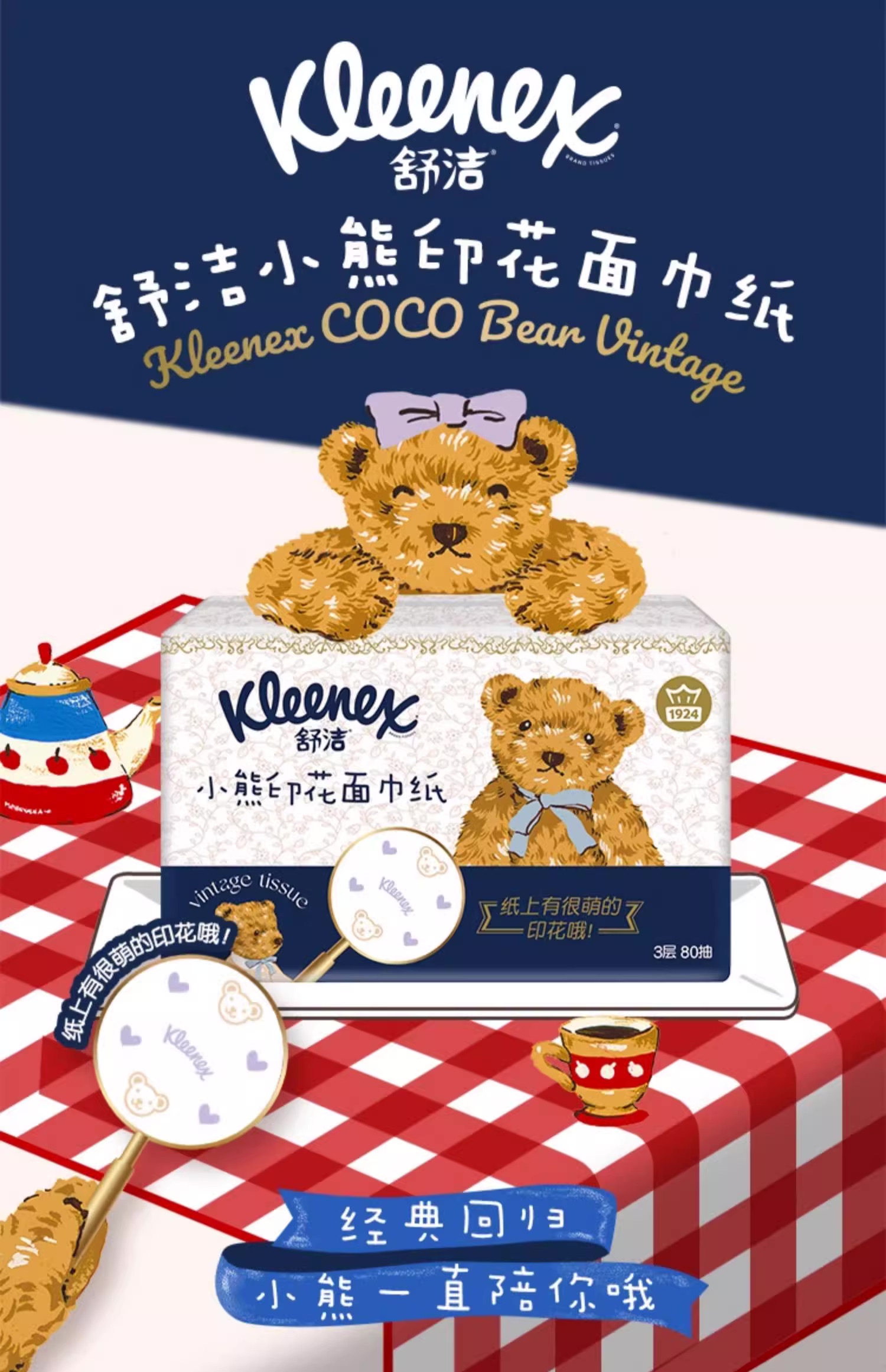 舒洁(Kleenex) 印花抽纸 小熊印花 3层80抽16包 宝石蓝(单位:提)