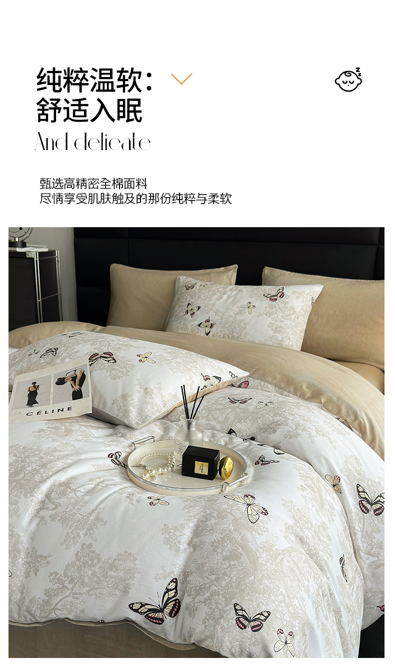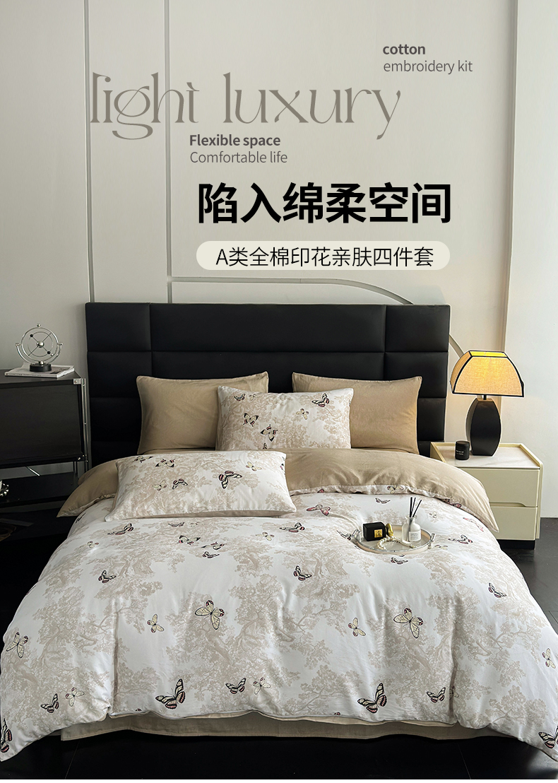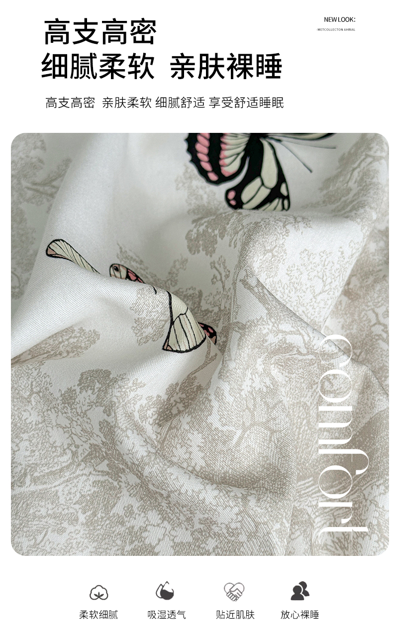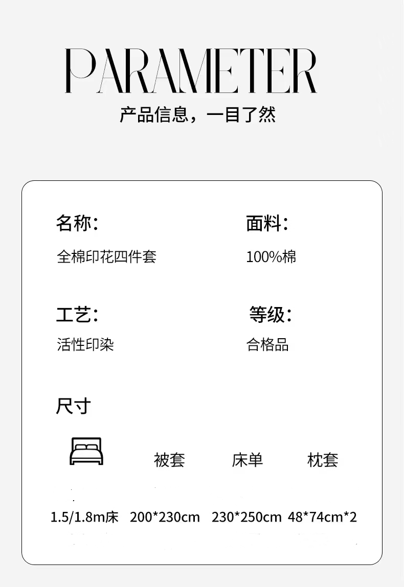 Hllton Meiju 100%新疆全棉亲肤超柔印花四件套 HL-1006 200x230cm 福气叠叠(单位:套)