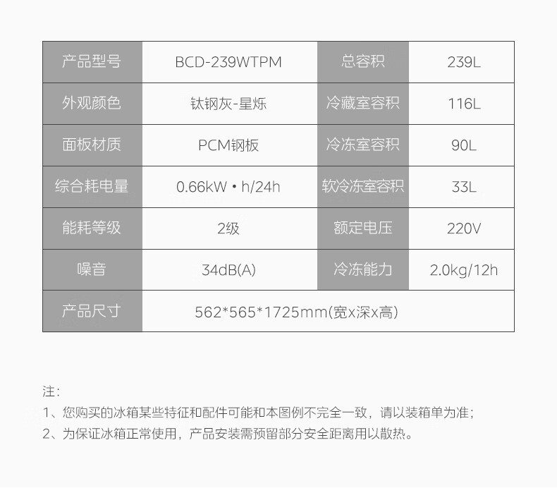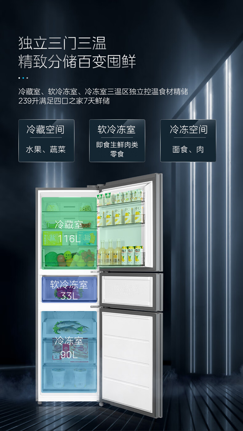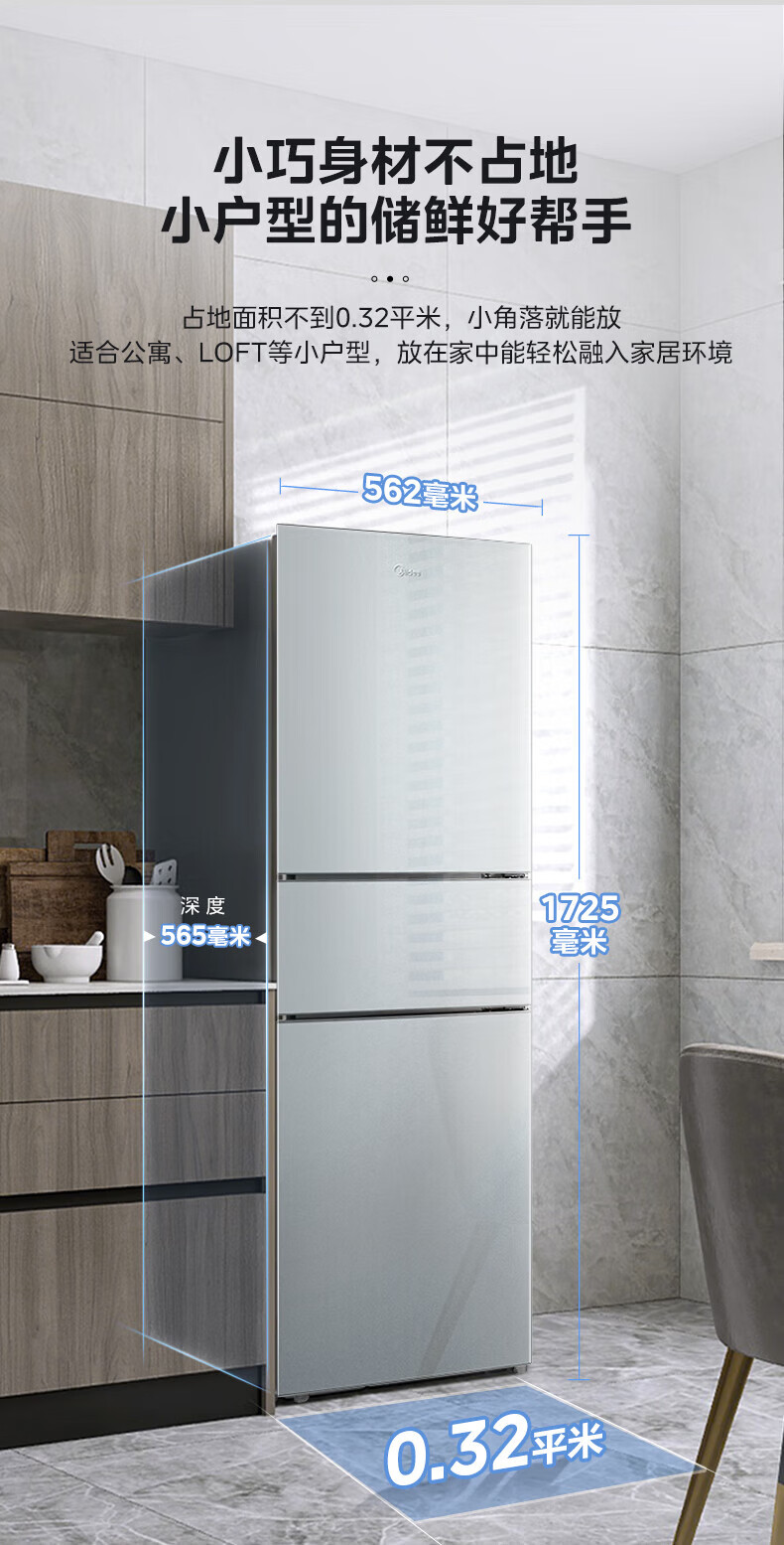 美的(Midea) 三门冰箱 BCD-239WTPM 239L 钛钢灰(单位:台)