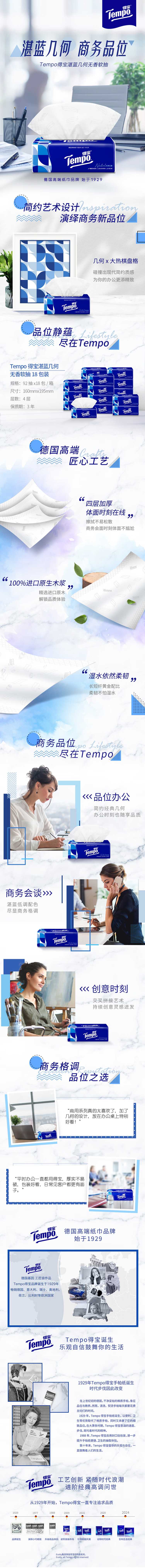 得宝(TEMPO) 抽纸 T2287-A 92抽18包 蓝色(单位:箱)