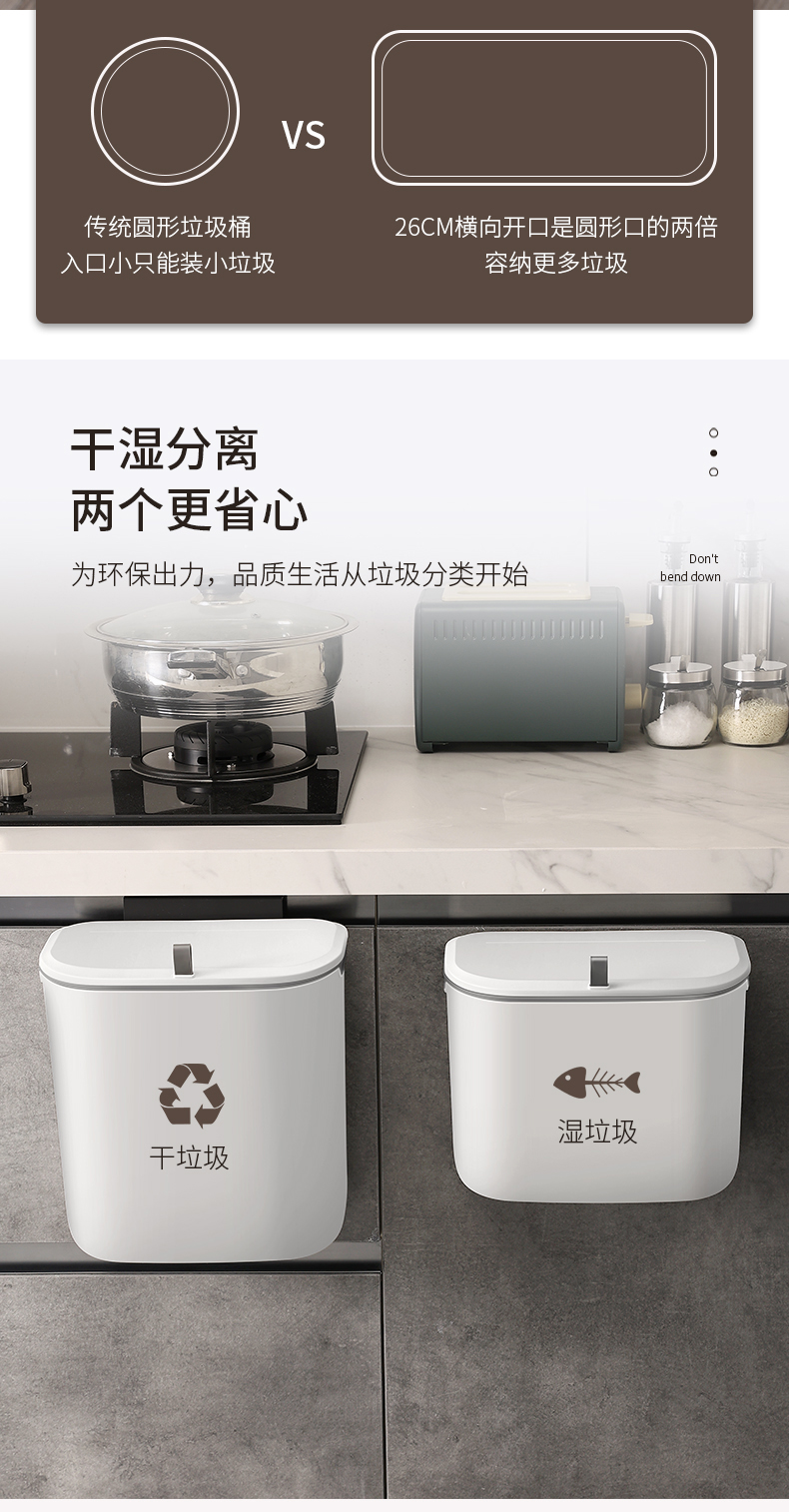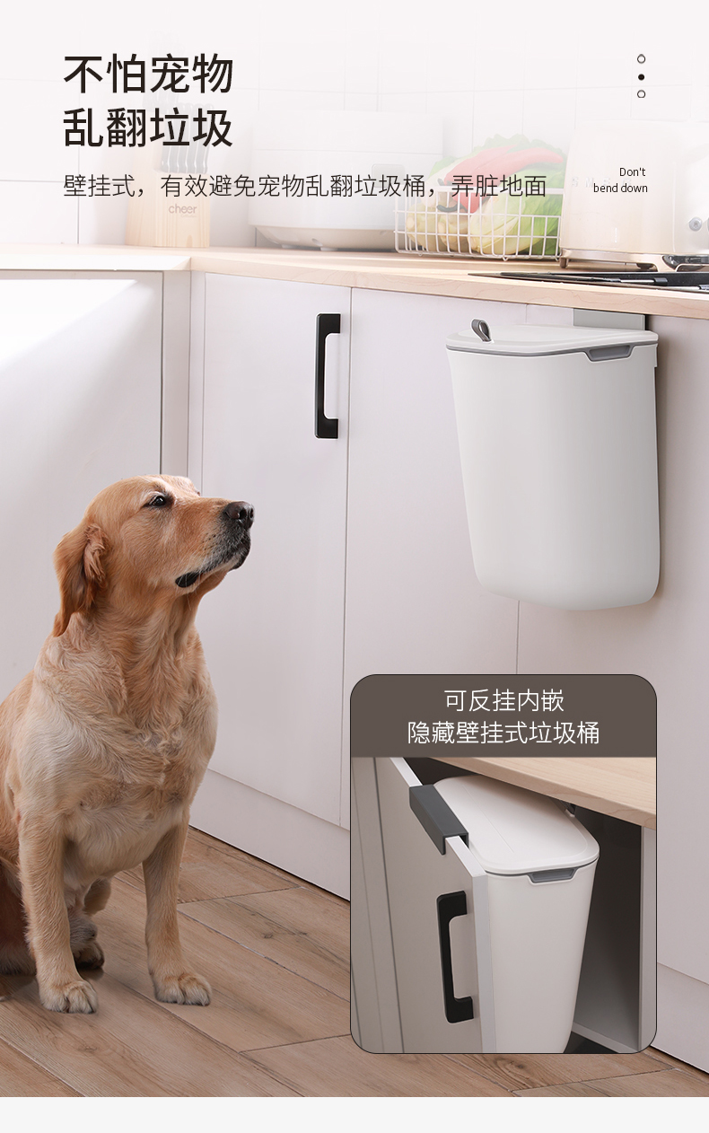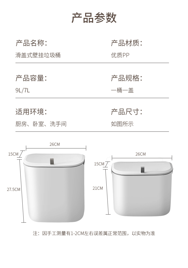 洁安惠 塑料壁挂滑盖垃圾桶 546 7升 白色(单位:台)