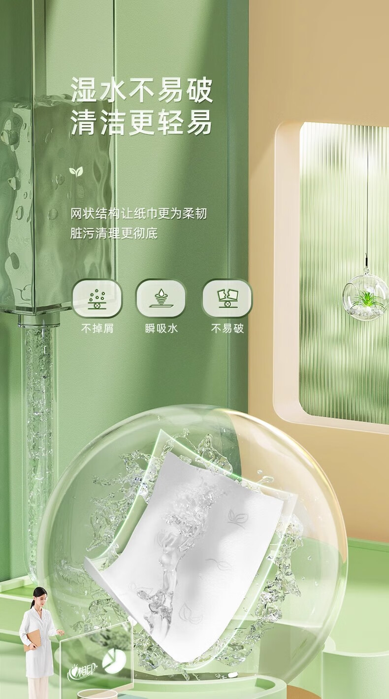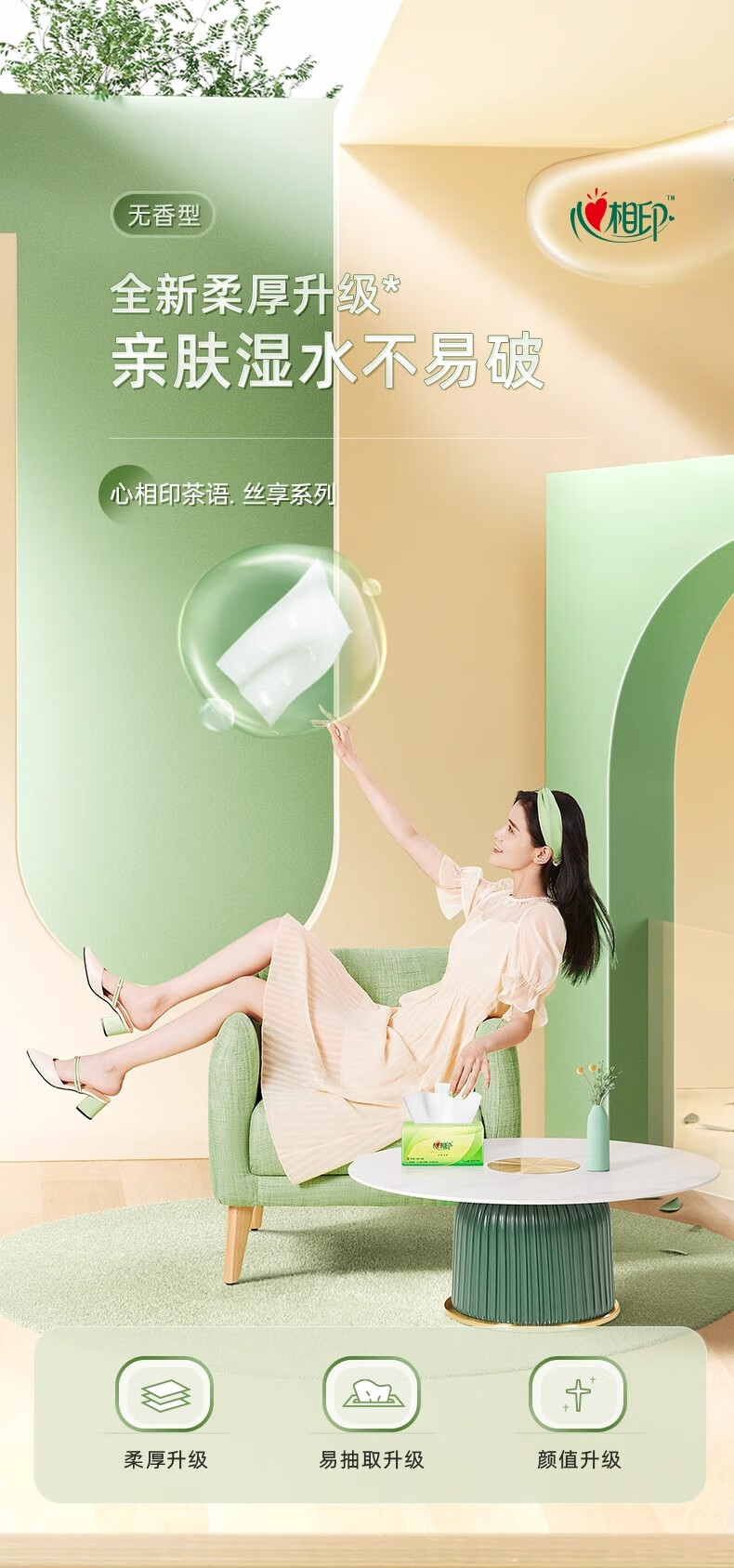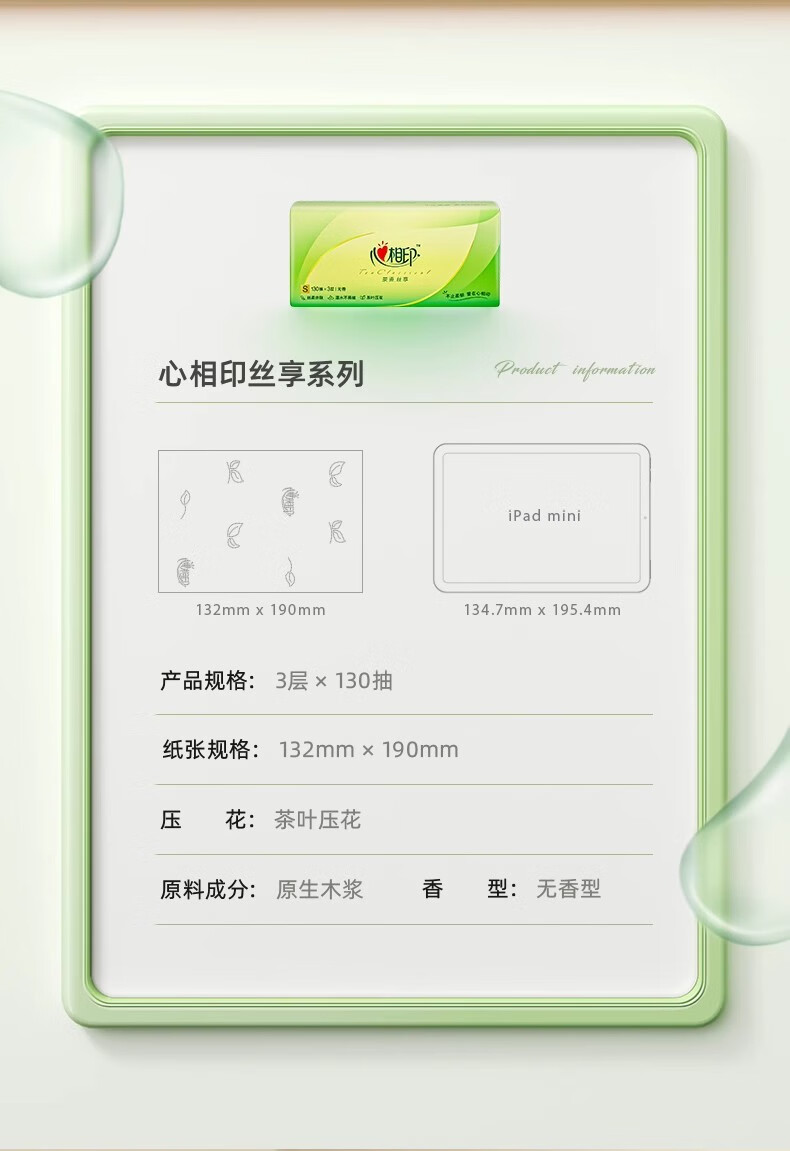 心相印茶语丝享系列130抽三层塑装纸面巾DT15130(72包装)箱 绿色