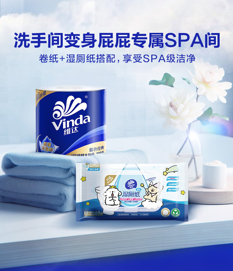 维达 卷纸 蓝色经典 4层 200g/卷 10卷*1提*4提 蓝色(单位:组)