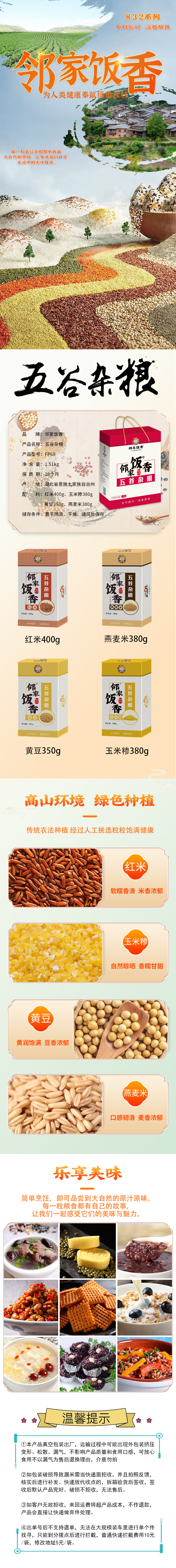 邻家饭香 五谷杂粮红豆玉米糁黄豆燕麦组合 FP68 1.51kg 混色(单位:盒)